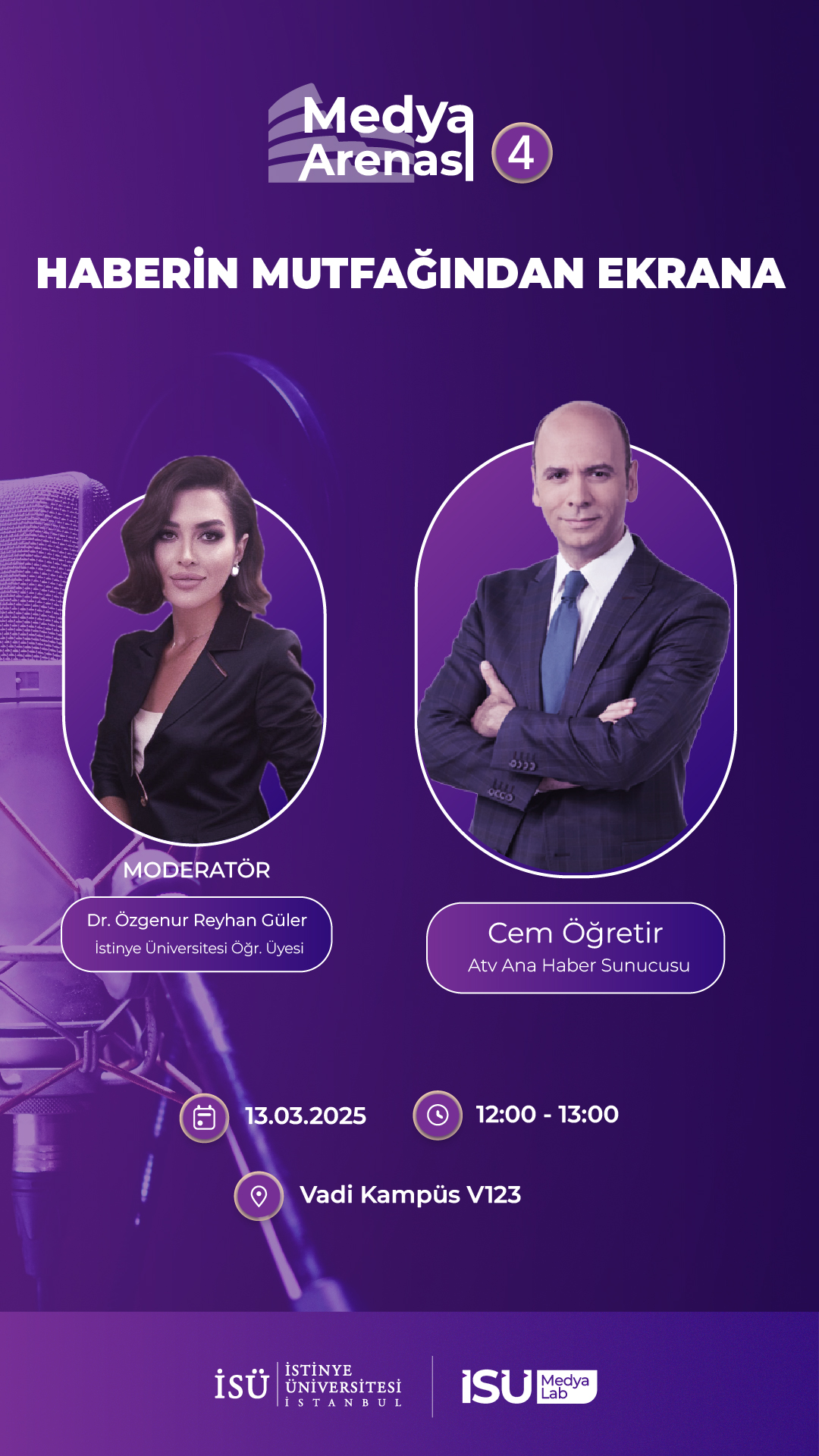 İstinye Üniversitesi İletişim Fakültesi Medya Merkezi tarafından 13 Mart 2025 Perşembe günü, saat 12.00'de Vadi H Yerleşke Konferans Salonu'nda Cem Öğretir'in katılımıyla gerçekleştirilecek olan "Haberin Mutfağından Ekrana" etkinliğine davetlisiniz.