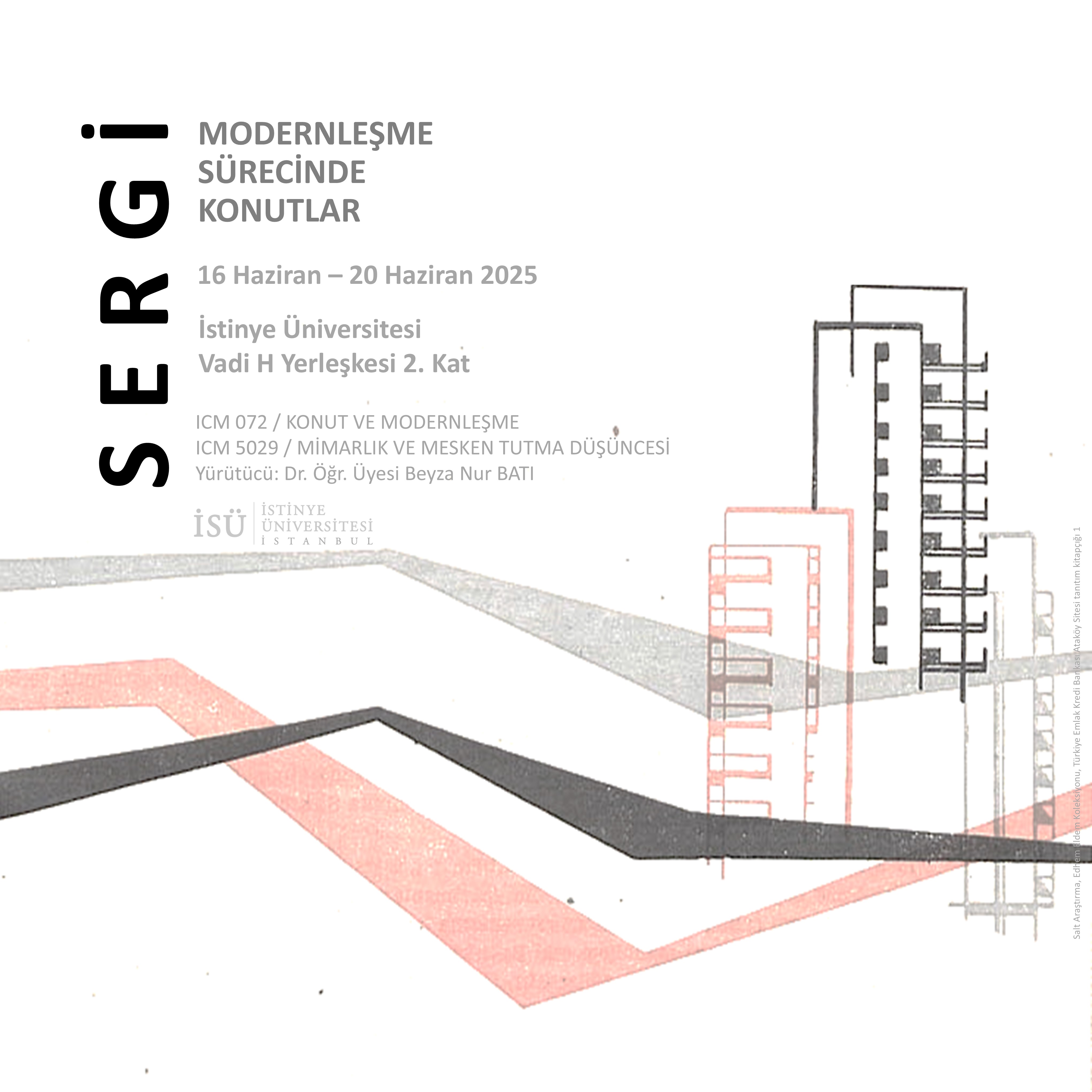 İstinye Üniversitesi İç Mimarlık ve Çevre Tasarımı Bölümünün düzenlediği “Modernleşme Sürecinde Konutlar” Sergisini, Vadi H Yerleşke, 2. Kat sosyal alanda, 16-20 Haziran 2025 tarihleri arasında ziyaret edebilirsiniz.