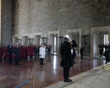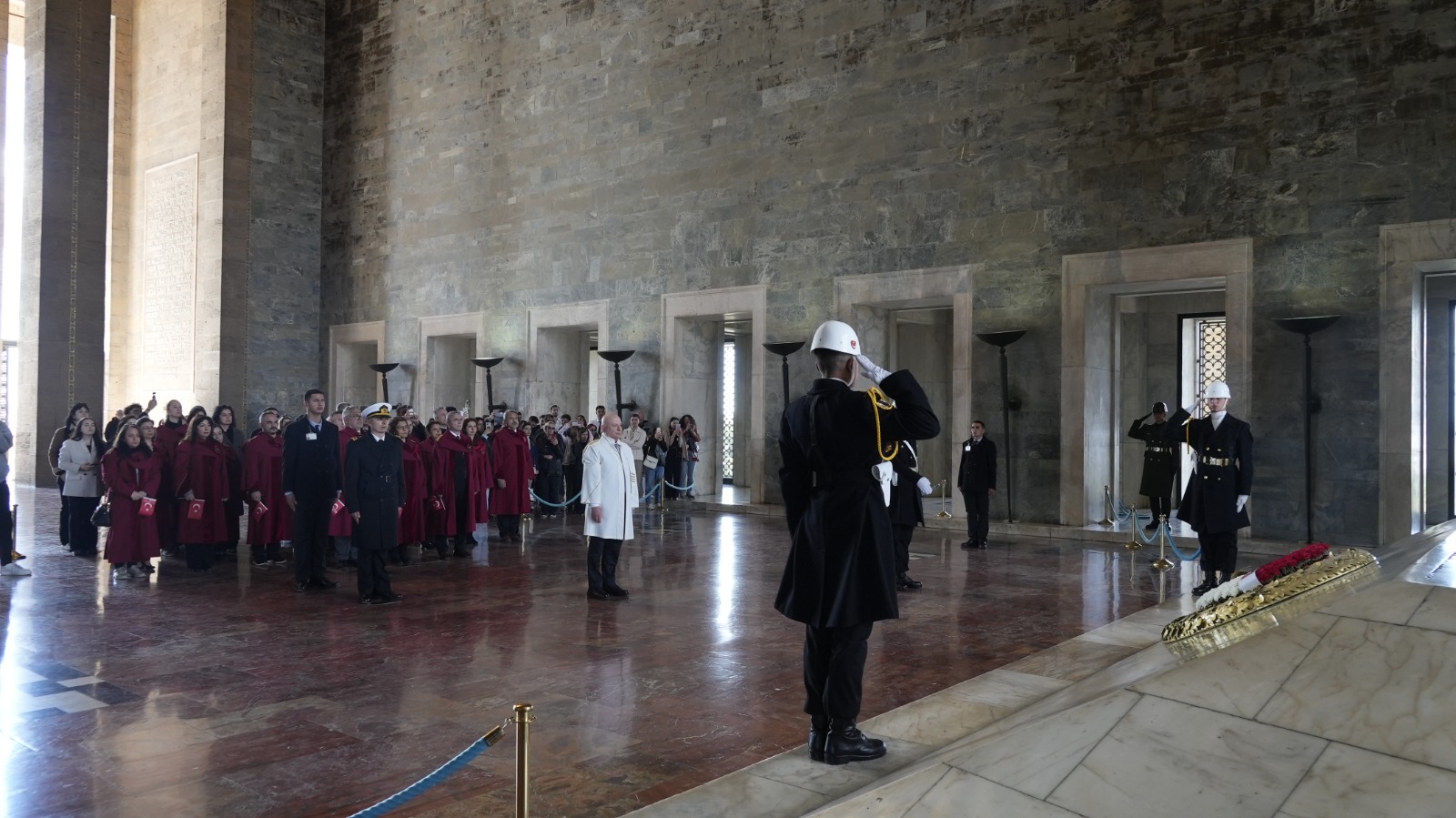 Ziyarete, İstinye Üniversitesi Rektörü Prof. Dr. Erkan İbiş başta olmak üzere Rektör Yardımcıları Prof. Dr. Peyami Çelikcan ve Prof. Dr. Hatice Gülen de katıldı. Rektör Prof. Dr. İbiş, Atatürk'ün mozolesine çelenk sundu ve ardından Anıtkabir Özel Defteri'ni imzaladı.