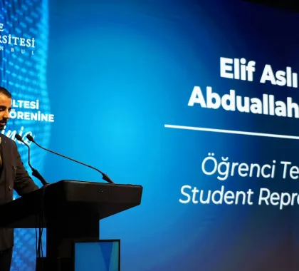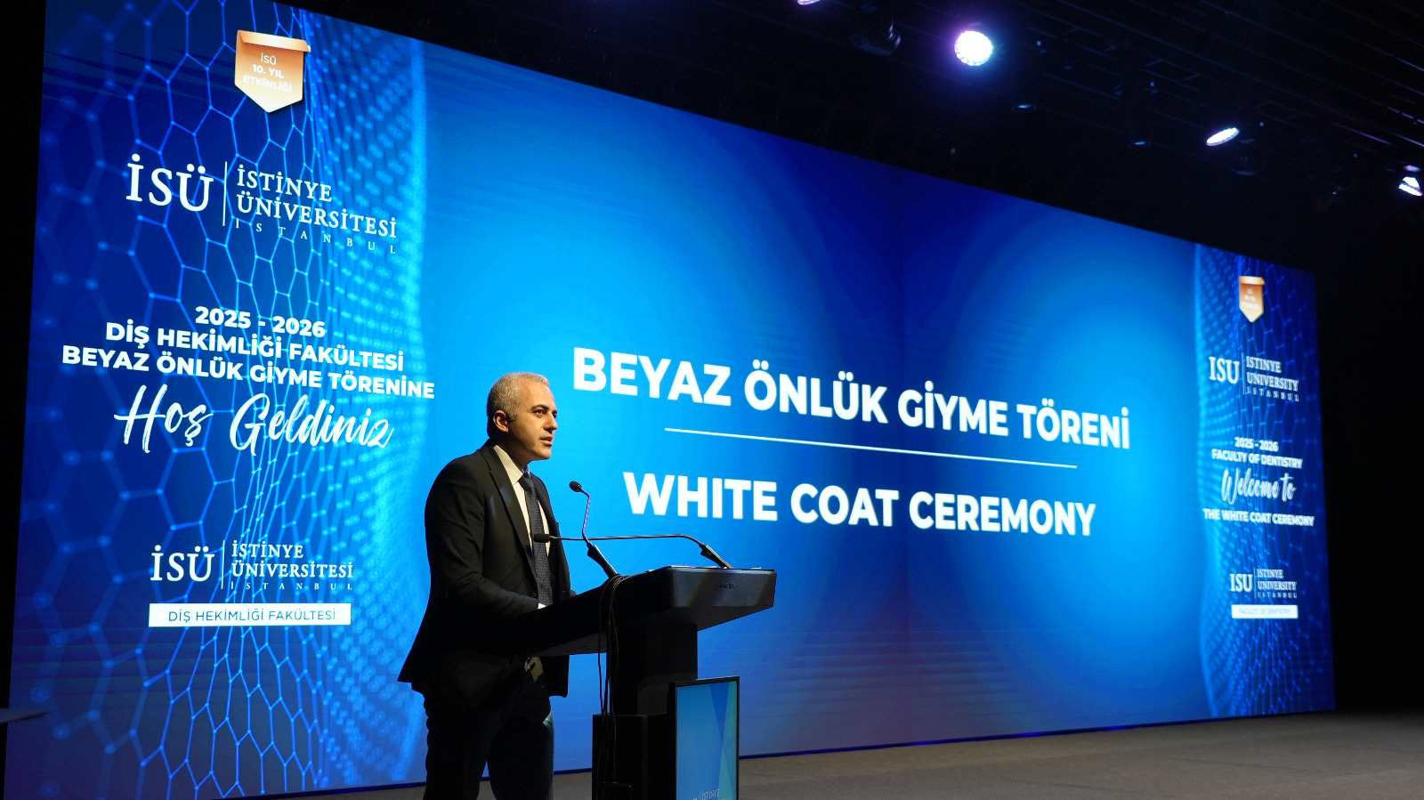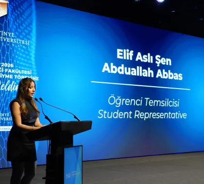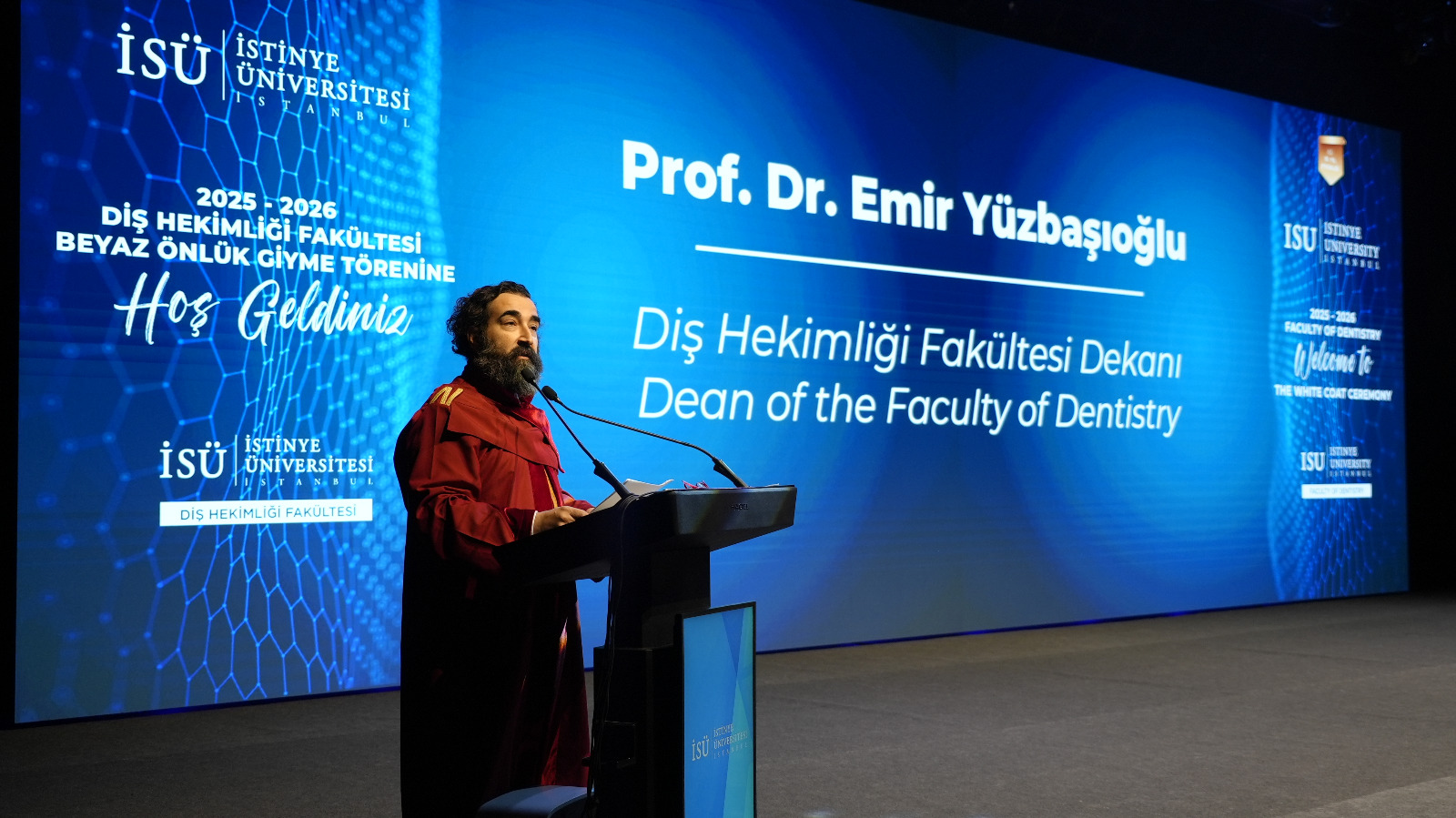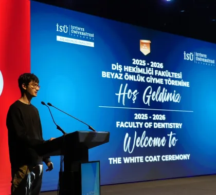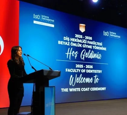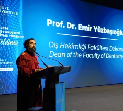 The program continued with remarks by Prof. Dr. Emir Yüzbaşıoğlu, Dean of the Faculty of Dentistry. Yüzbaşı said, "Dentistry is a profound journey that cannot be contained within a single lifetime. This white coat represents a lifetime of learning. Today, we are here not just for a ceremony, but to embark on a journey to the heart of the medical profession, to the meaning of the white coat, and to the Hippocratic tradition that forms the philosophical experience of this profession spanning thousands of years."