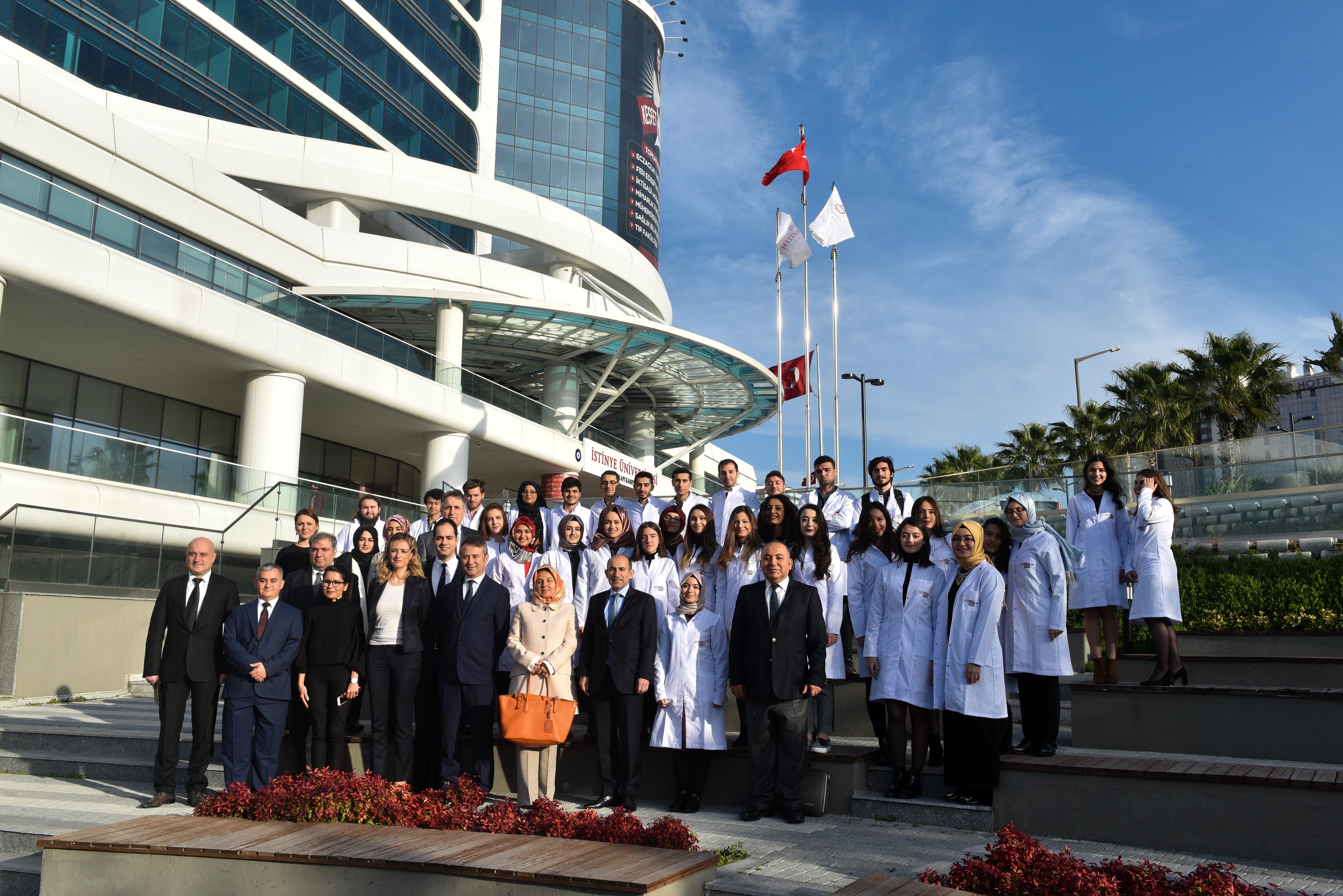The students of Pharmacy Faculty at Istinye University wore their aprons with a ceremony held in the Topkapı Campus of Istinye University. The ceremony started with the speech of our student, Sena BÜYÜKBAŞ and continued with the speech of Abdullah OLGUN, Dean of Faculty of Pharmacy, about the importance of the day. Saliha USTA, the 21st Century Anatolia Foundation Board of Trustees member, contributed to the ceremony with her speech. Then, Prof. Dr. Melih BULU, the rector of Istinye University addressed students and emphasized the importance of raising moral individuals who are interested in different fields as well as academic achievements.