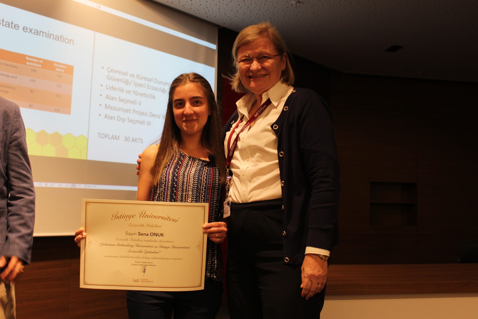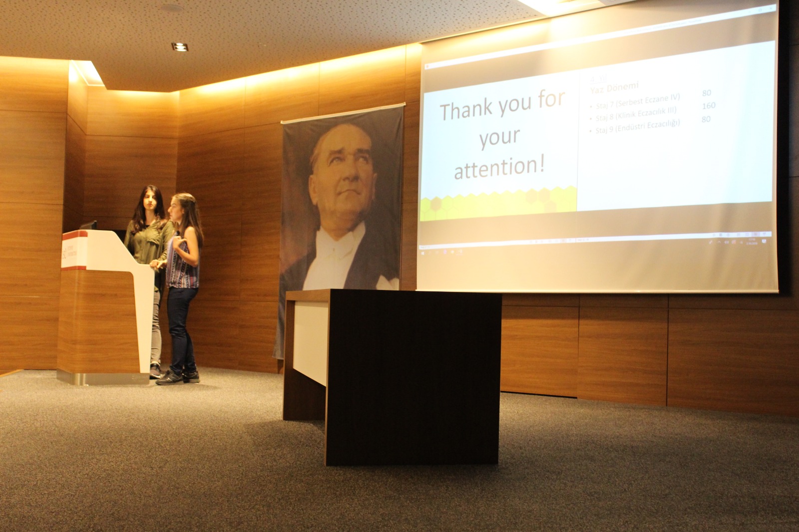 A seminar entitled “Johannes Guthenberg University and Istinye University Faculty of Pharmacy Education”; Nihan Önal, a pharmacy undergraduate student at Johannes Gutenberg University-Germany, who completed her 2-month summer internship within the scope of Erasmus+ Internship Mobility Program at Istnye University and Sena Onuk, a pharmacy sophemore student at Istinye University, gave a seminar on differences between pharmacy education in Turkey ad in Germany.