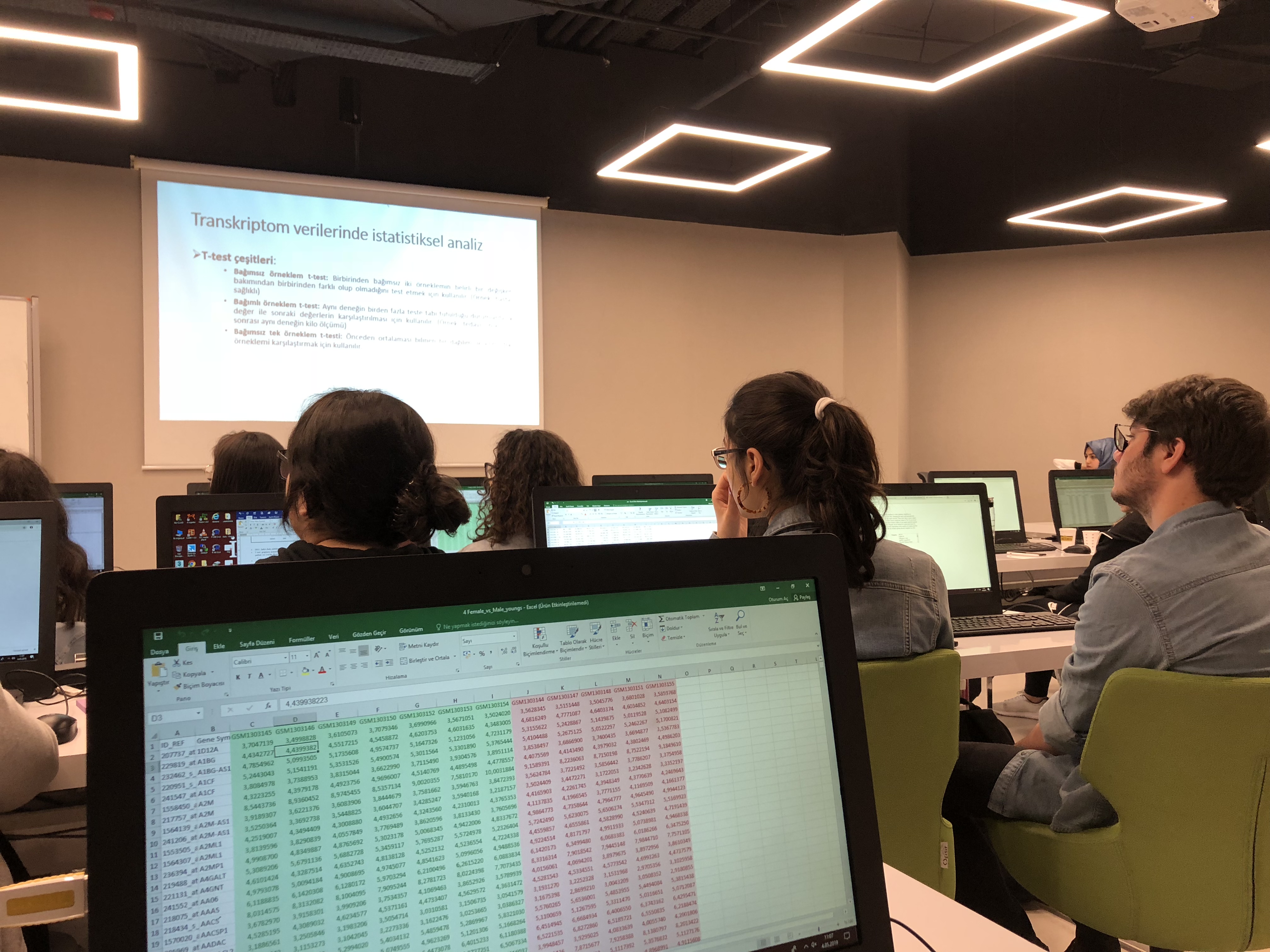 After taking theoretical knowledge on basic topics such as system biology, pharmacogenomics and statistical analysis of transcriptom data; they learned how to analyze the data using excel, programs such as cytoscape and the use of various data banks.