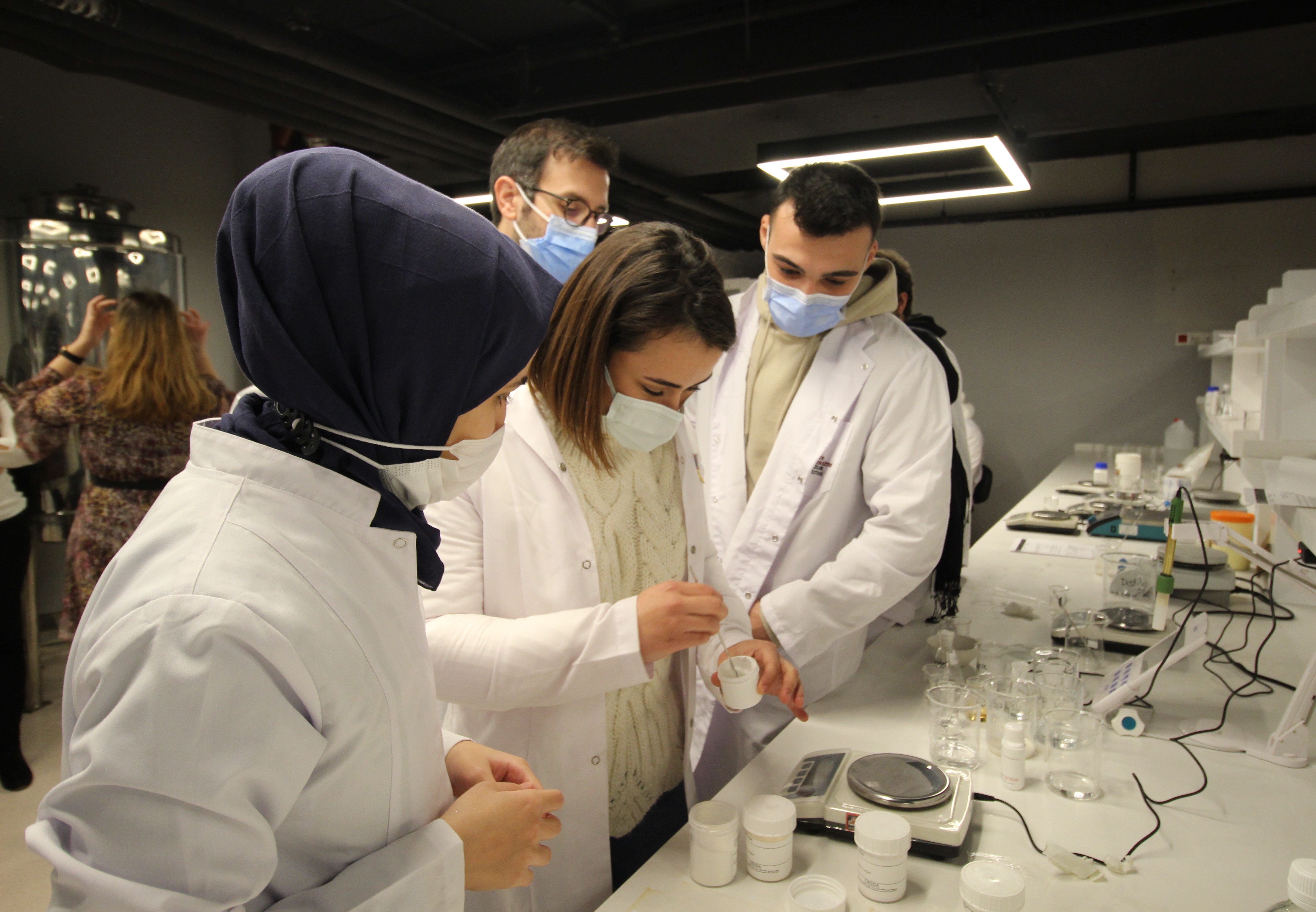 Istinye University Faculty of Pharmacy students, who had the chance to design their own products with innovative glitter dyes eyeshadows; left the laboratory as a learning experience by taking the current, innovative and original products they have created with their own efforts as a souvenir.