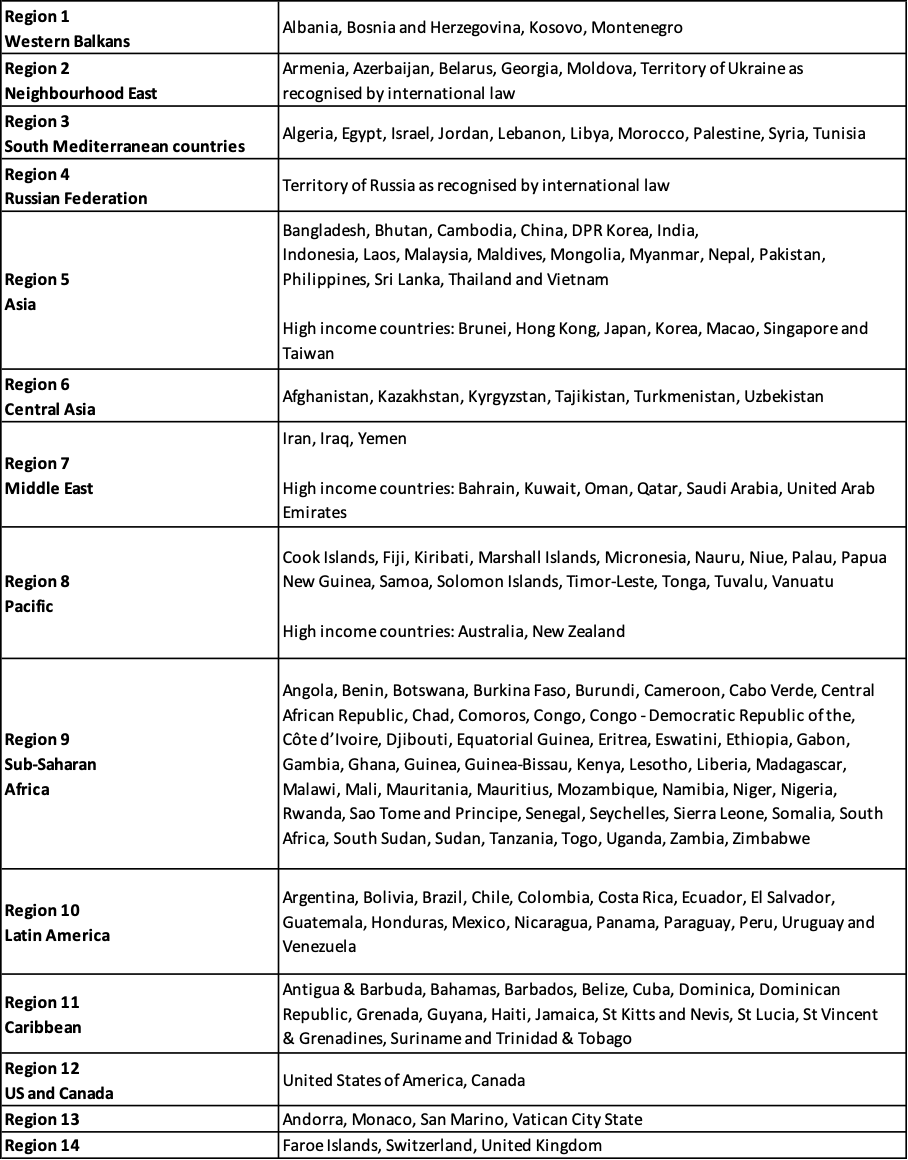 COUNTRIES THAT ARE NOT RELATED TO THE PROGRAM (REGION 1-14 COUNTRIES)