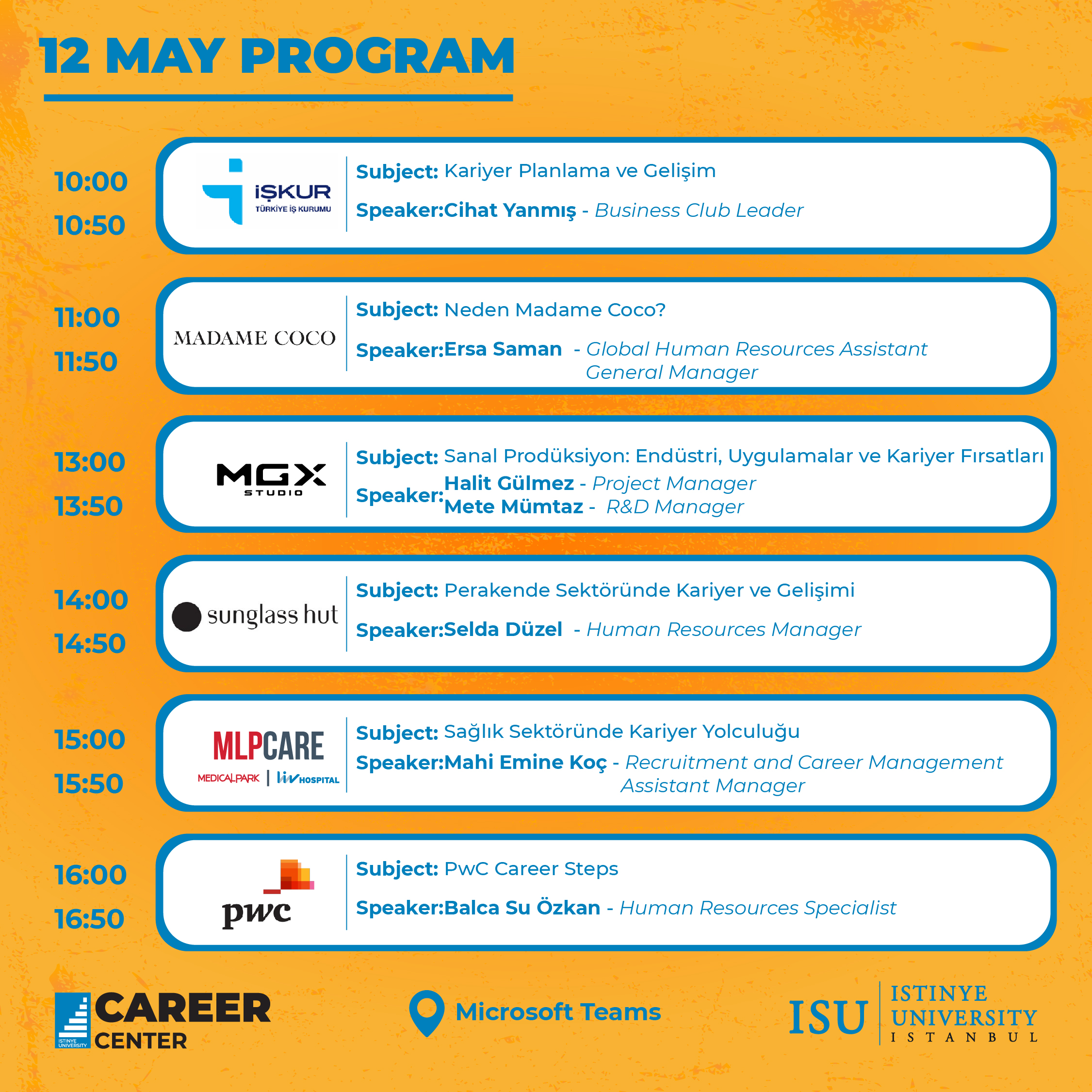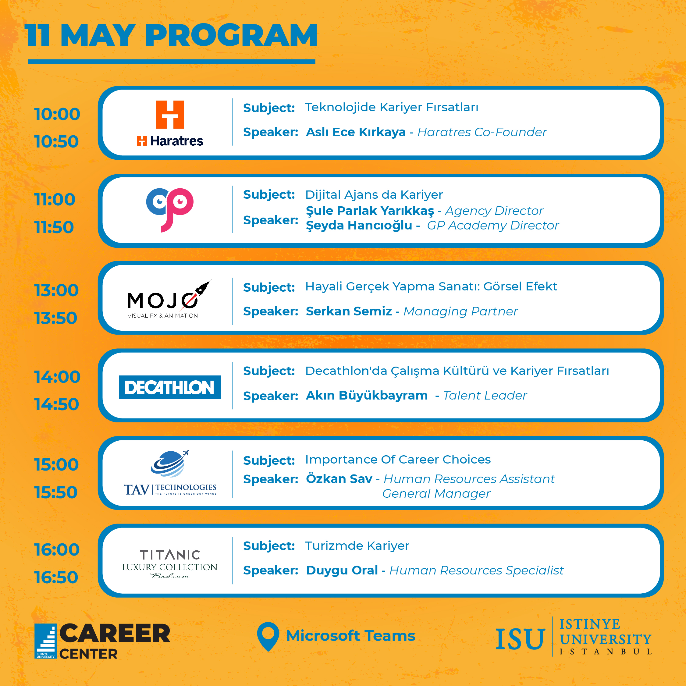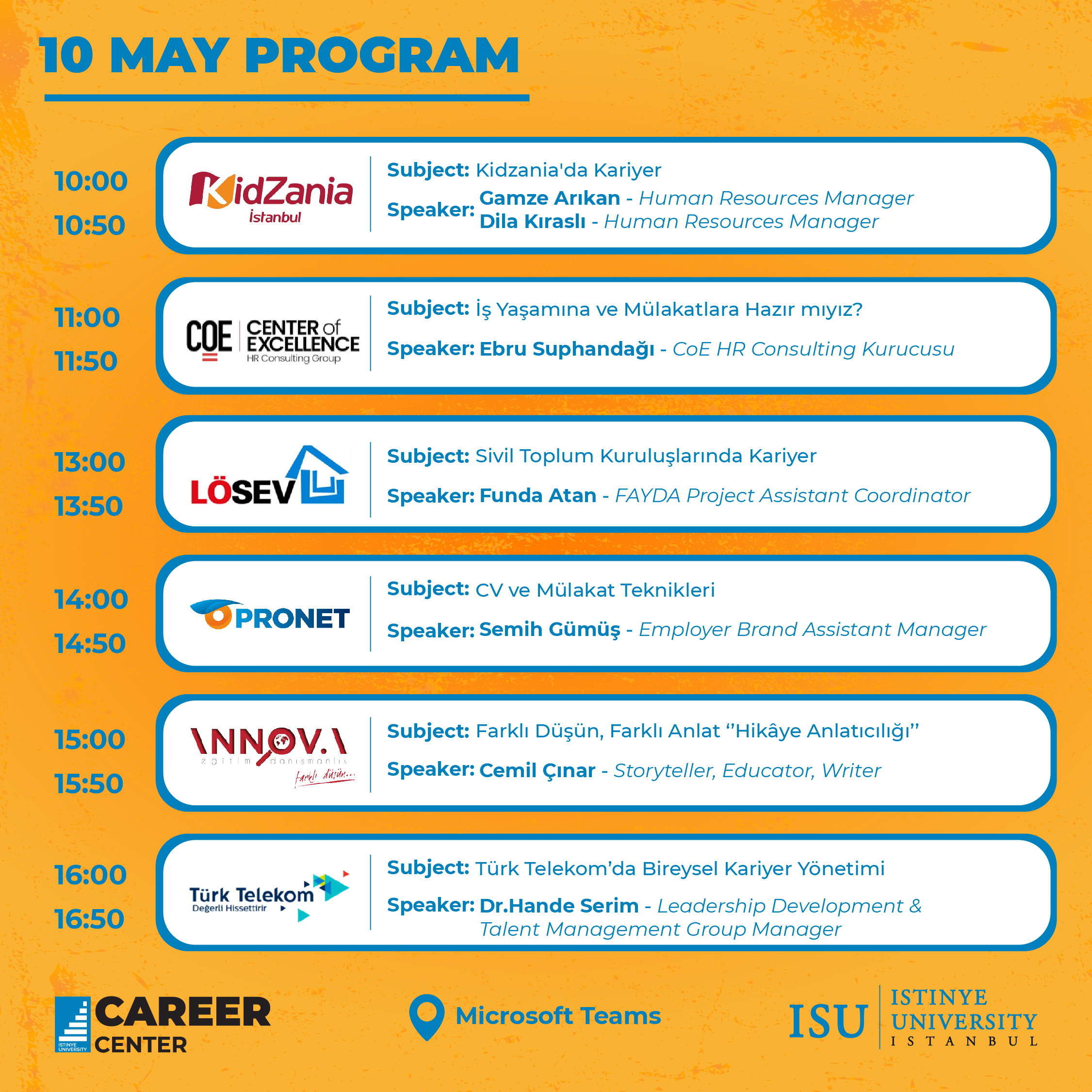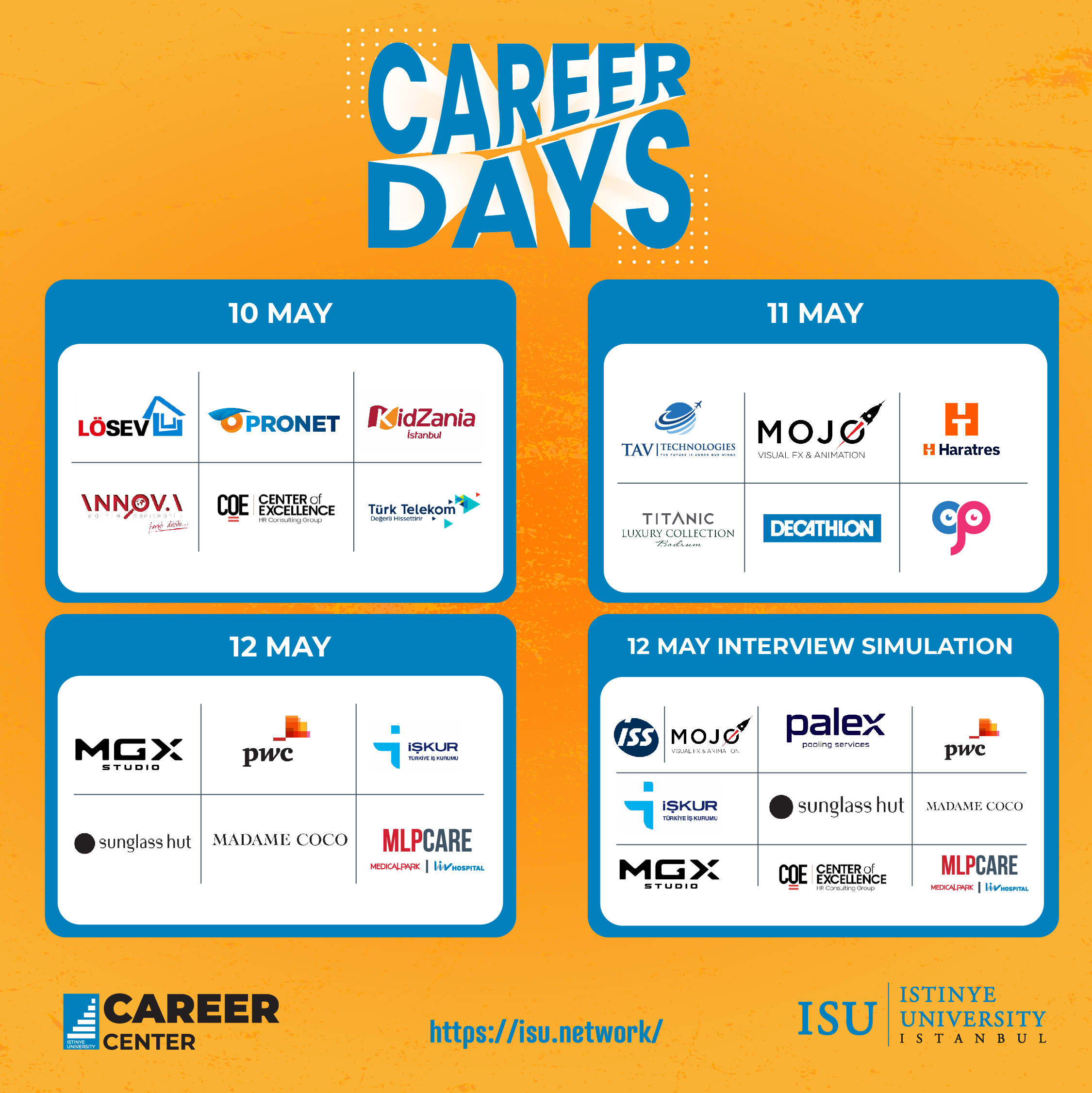 Career days that have been arranged by Istinye University Career Center on the dates between May 10,11,12 will be online.