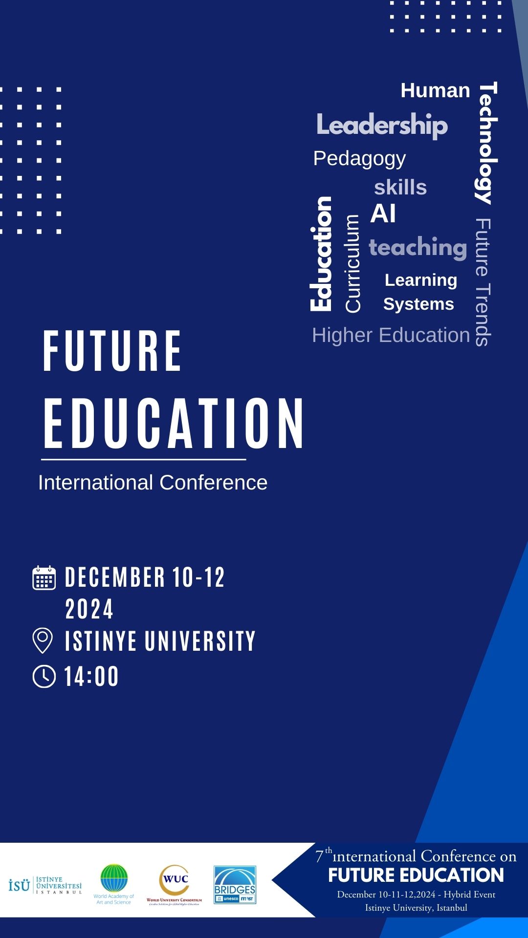 You are formally invited to the 7th International Conference on Future Education, organized in collaboration with İstinye University, the World Academy of Art and Science (WAAS), and the World University Consortium.