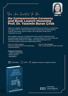 You are cordially invited to the event titled “Commemoration Ceremony for Prof. Dr. Yasemin Buran Çırak and Intensive Care Physiotherapy Book Launch,” which will be held on April 15, 2026 at 10:30, organized by the Department of Physiotherapy and Rehabilitation at Istinye University.
