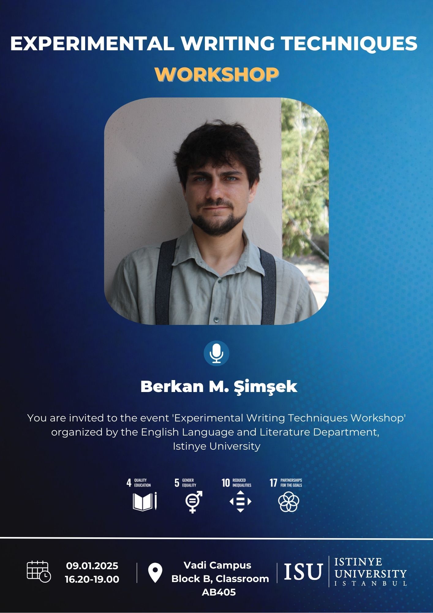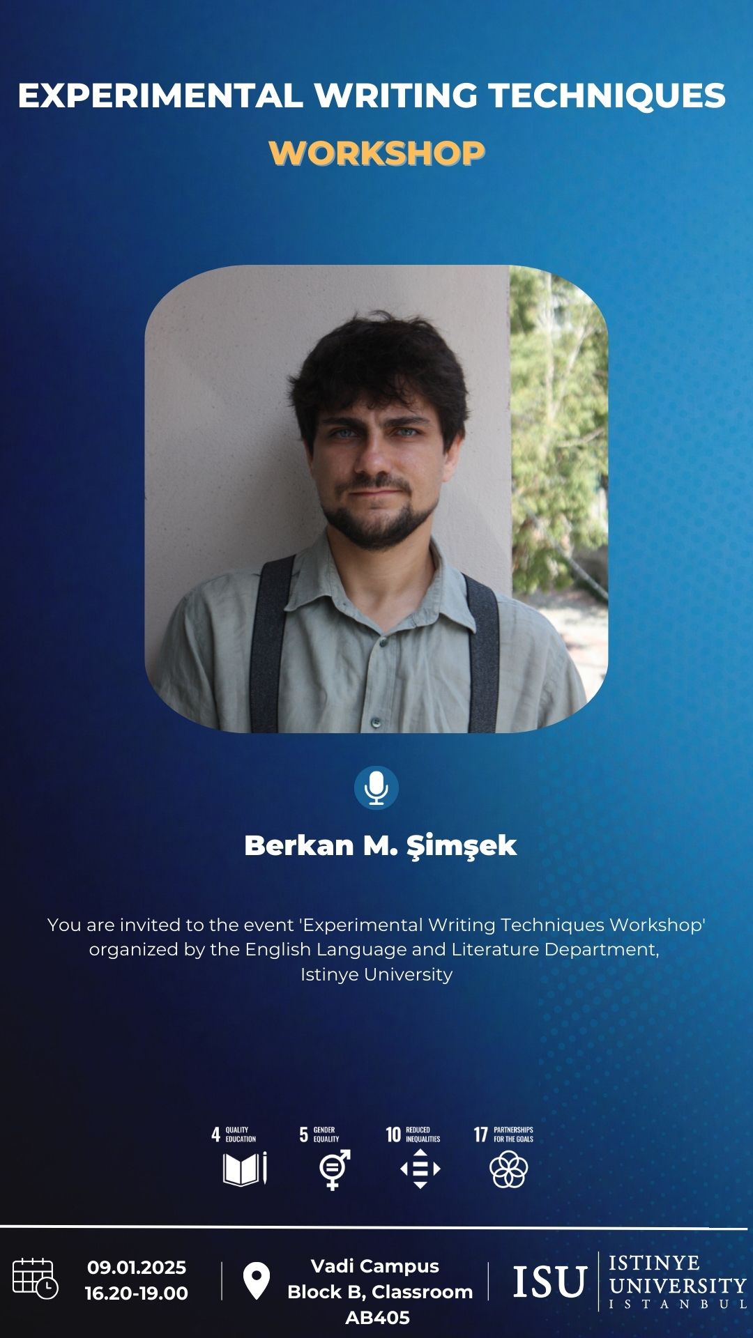 You are invited to the event 'Experimental Writing Techniques Workshop' organized by the English Language and Literature Department, Istinye University.