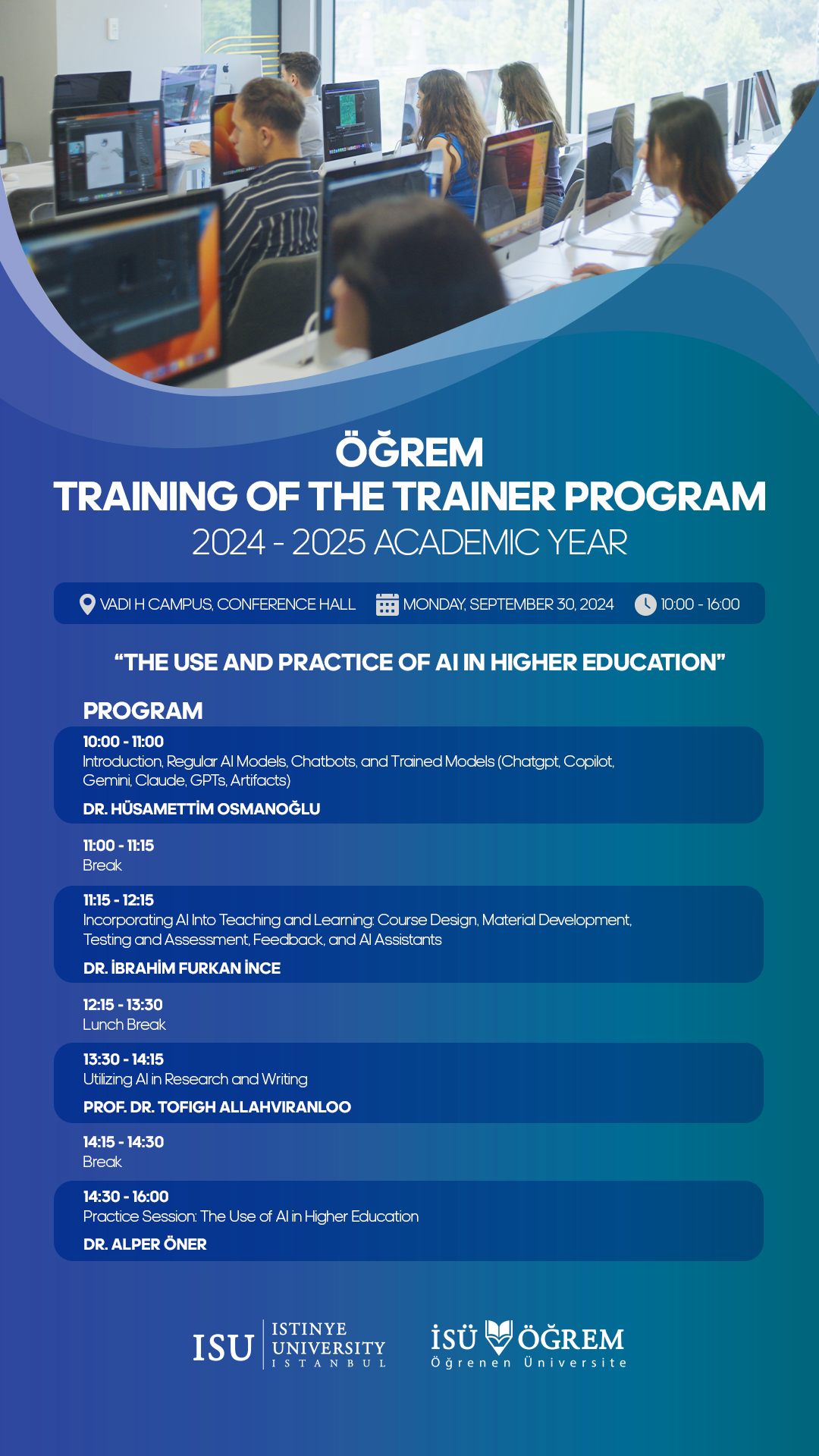 You are invited to the event to be held by Istinye University, Teaching and Learning Center (ÖĞREM) on Monday, September 30, 2024 at 10:00 at the Vadi H Campus Conference Hall.