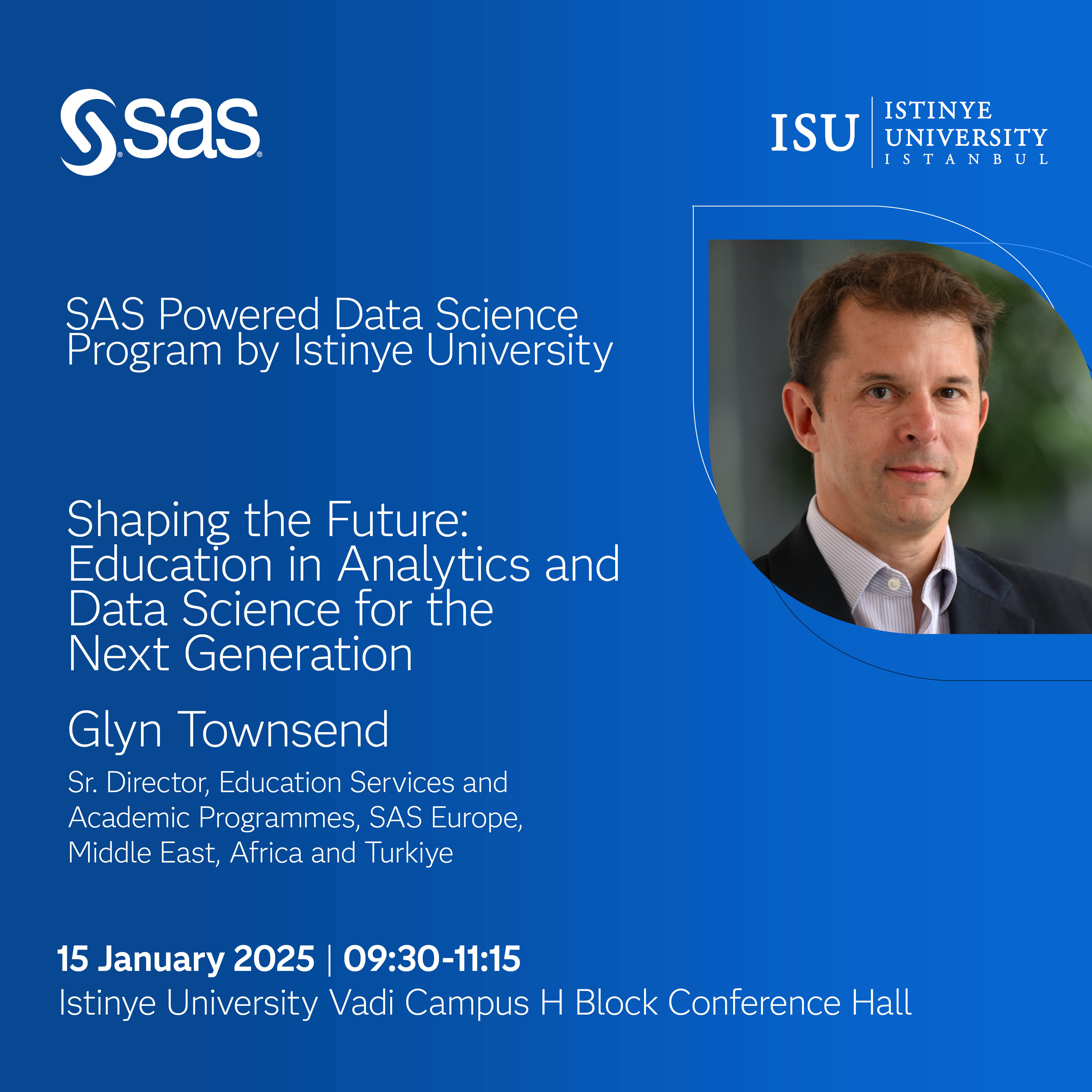 The launch of the educational program initiated in collaboration with SAS and Istinye University will take place on Wednesday, January 15, at the Istinye University Vadi H Campus Conference Hall. Following a presentation by Glyn Townsend, Sr. Director, SAS Education Services and Academic Programmes, a panel discussion will feature prominent speakers including Türkiye and Central Asia SAS General Manager Rasim Eğri, SAS Professional Services Board Consultant and Istinye University Faculty Member Dr. Yasemin Yücel Karasu, Istinye University Rector Prof. Dr. Erkan İbiş, and President of the Board of Trustees, Dr. Muharrem Usta.