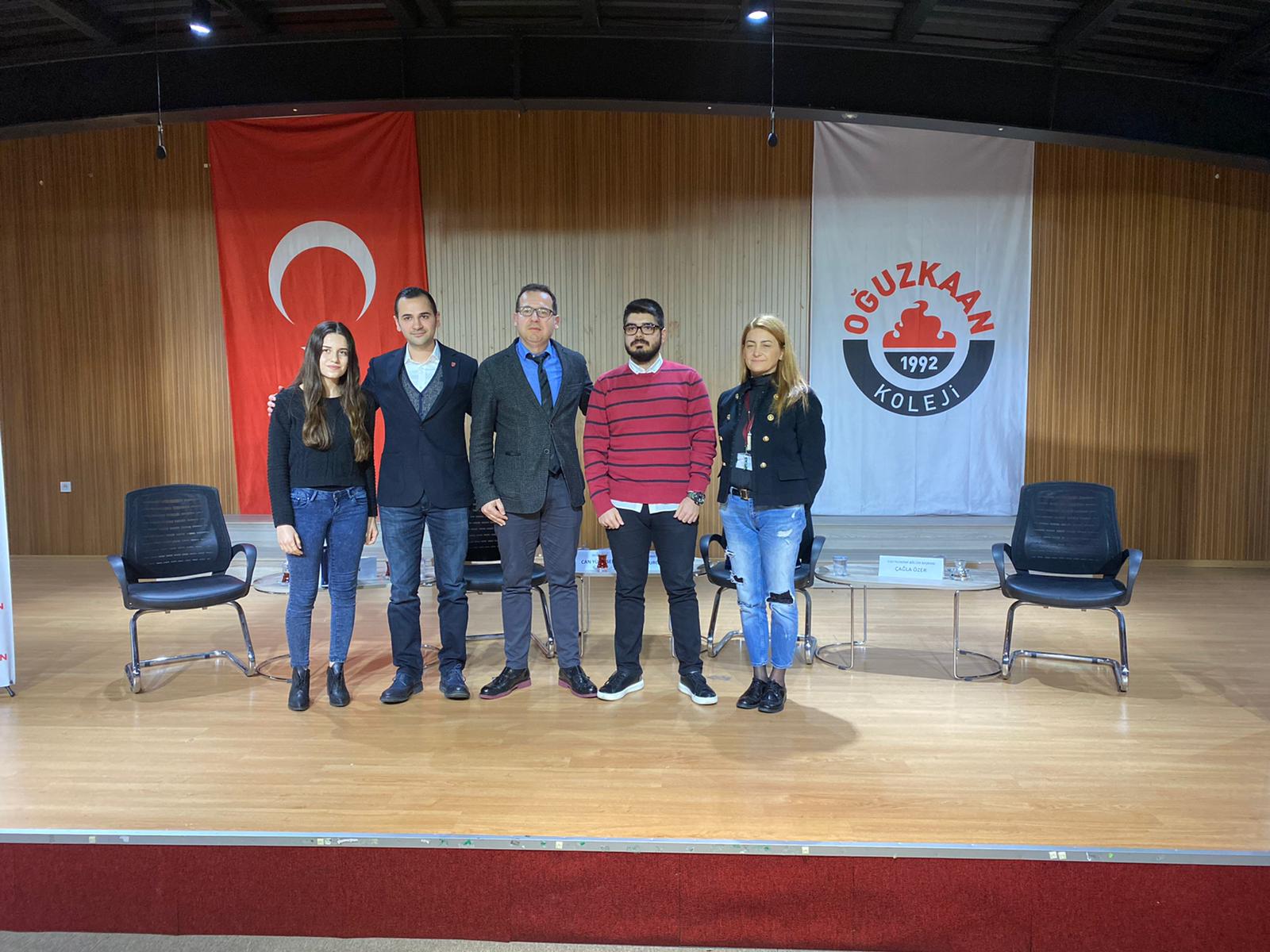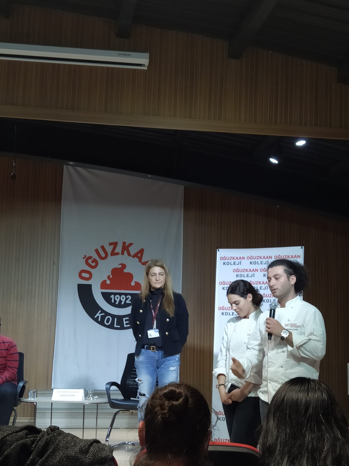 Head of the Istinye University Gastronomy and Culinary Arts Department Asst. Prof. Çağla ÖZER and her students Zeynep MURAN and Samet Enes ÇİÇEK attended the career days organized by OĞUZ KAAN College. Within the scope of the event, besides the introduction of Gastronomy and Culinary Arts Department, information was given about Istinye University.