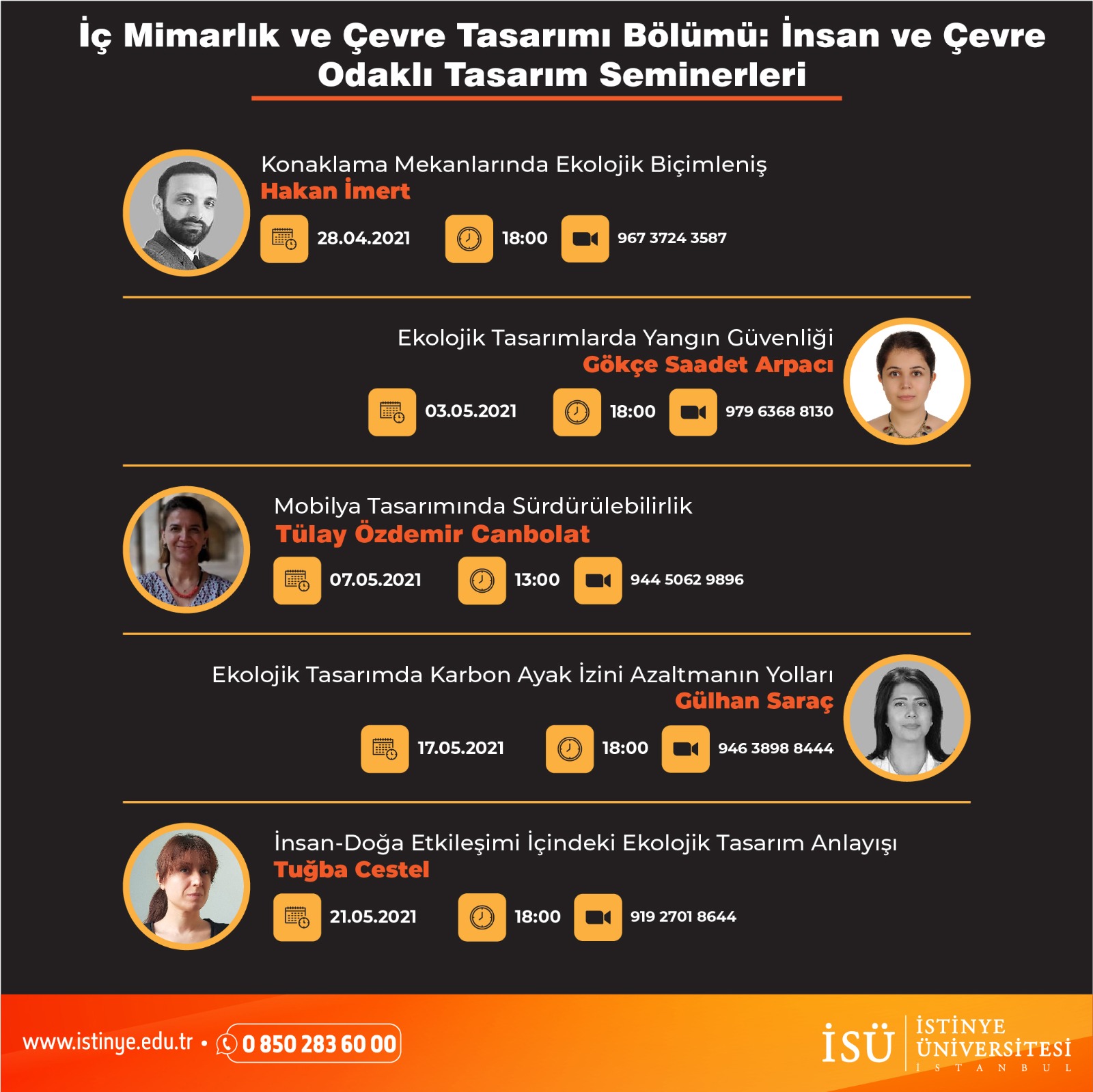 In the developing world, it is seen that both the concept and the field of design are expanding. The program of our seminar series, which focuses on certain issues in the context of ecological design, which increases its importance day by day, is as follows.