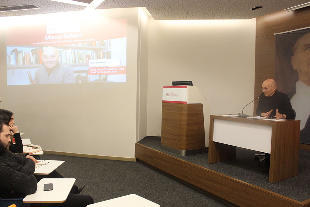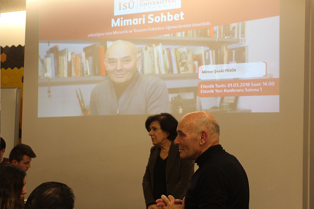 İstinye Üniversitesi Mimarlık ve Tasarım Fakültesi tarafından düzenlenen “Mimari Sohbetler” başlıklı seminerler dizisinde her hafta meslek alanında önde gelen mimar ve akademisyenler Mimarlık ve İç Mimarlık öğrencileriyle buluşmaya devam ediyor. Bu kapsamdaki etkinlik 1 Mart Perşembe günü ünlü mimar Şevki PEKİN’ katılımıyla İstinye Üniversitesi Topkapı Kampüsü’nde gerçekleşti.