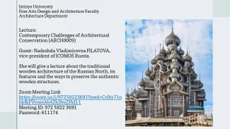 Ms. Filatova will deliver a presentation focused on the unique timber building traditions of the Russian North. She will explore their distinct architectural features and the complex challenges involved in preserving authentic wooden structures.