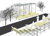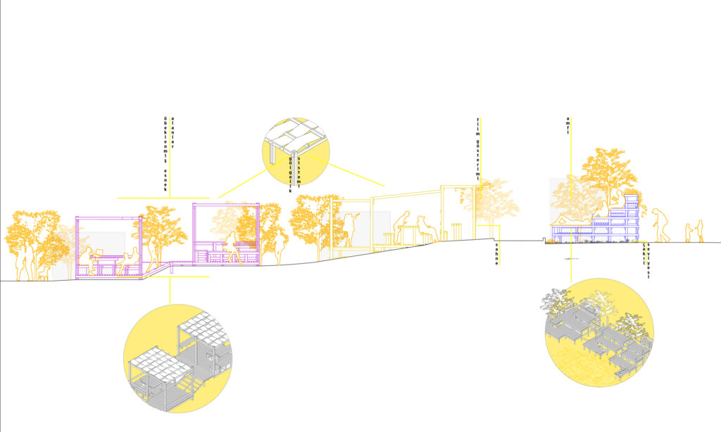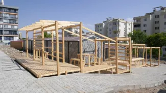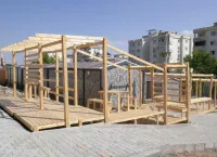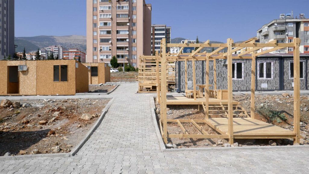 A social space was built for Mimkent, the container office space created by Kahramanmaraş Chamber of Architects for architects and engineers who lost their offices in the center of Kahramanmaraş during the February 6 earthquakes, in partnership with the Association of Architecture for All (Herkes İçin Mimarlık), Kahramanmaraş Chamber of Architects and Istinye University. The aim was to provide a socializing space for architects and engineers who will work in the containers, as well as hosting events where architects and engineers can come together with the city's citizens to share and discuss the future of the city.