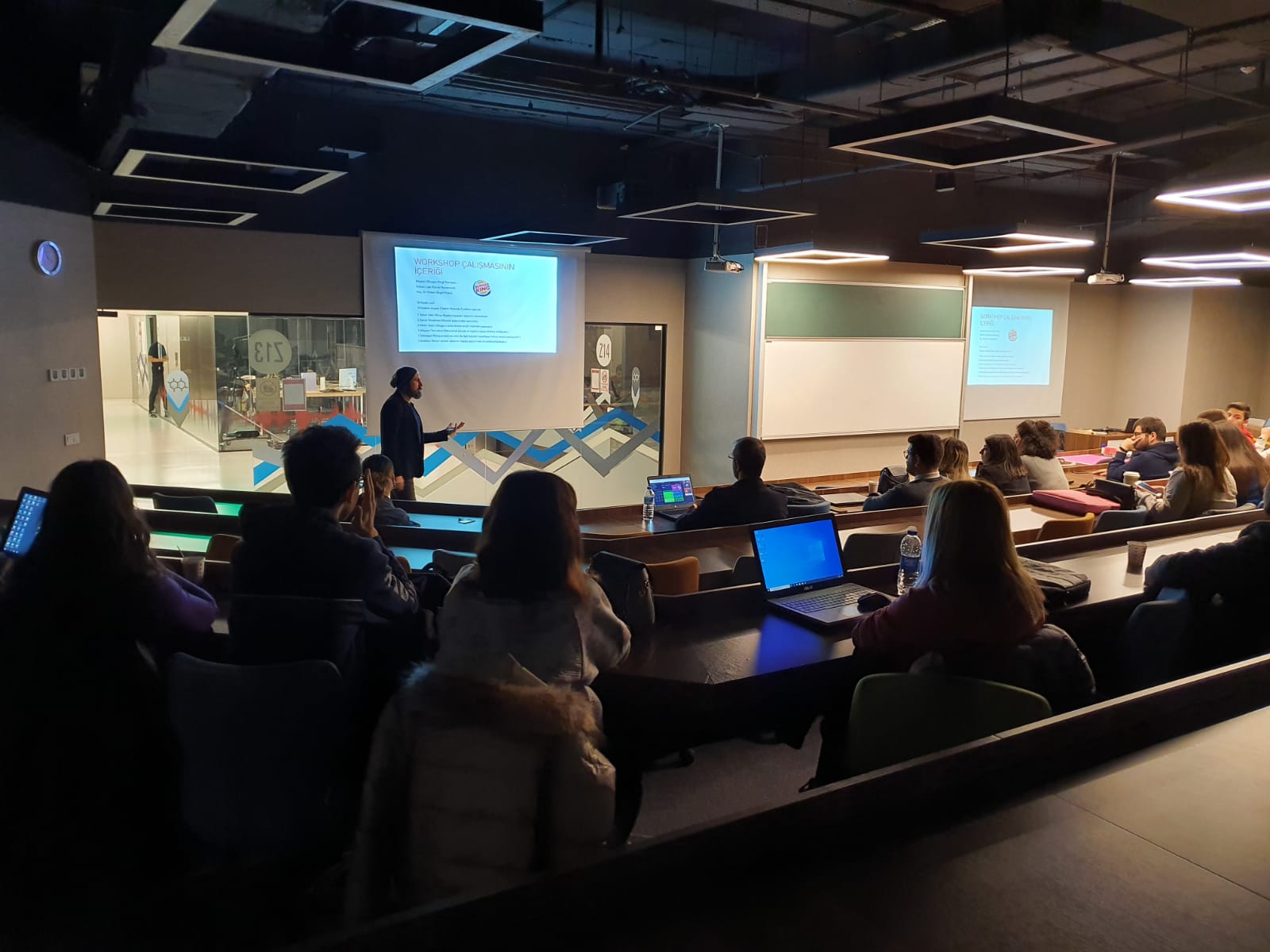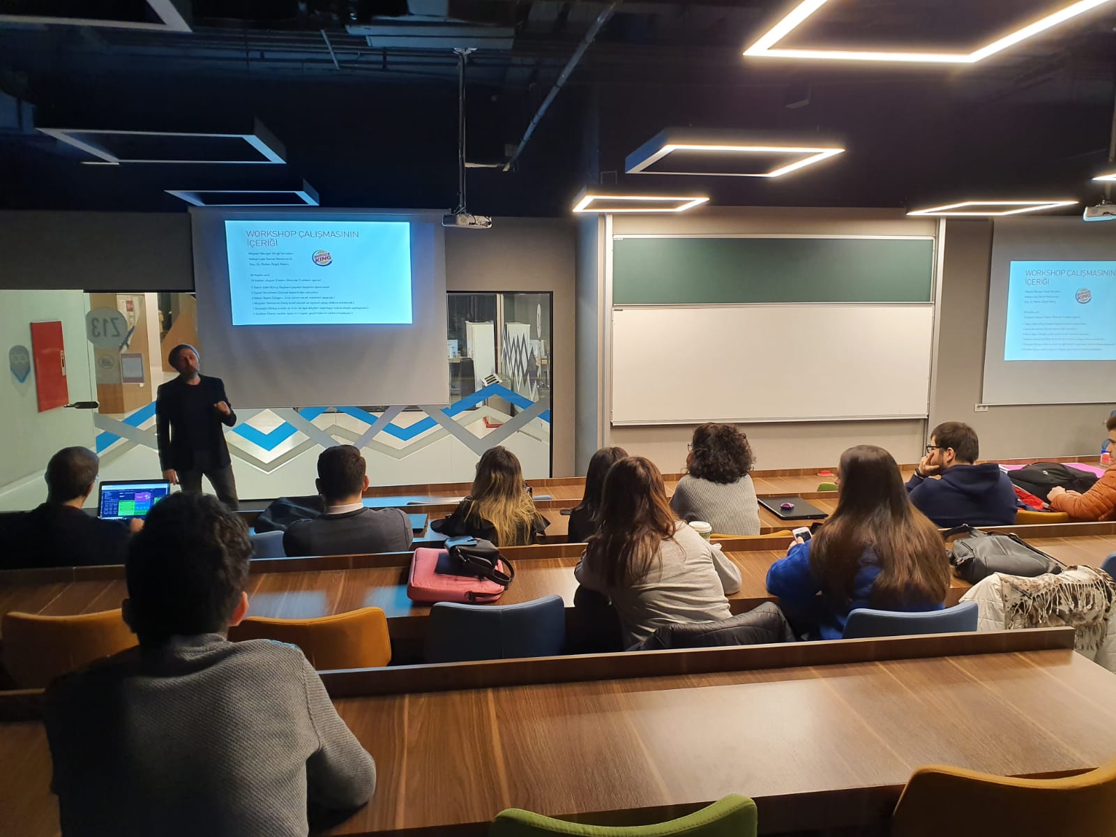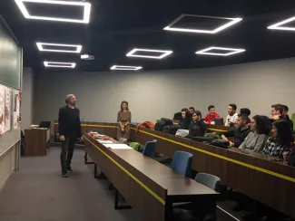 Volkan Lale, the art director of AD-Stop Advertising Agency, met with the second year students of the Public Relations and Advertising Department at the event held as part of the “Workshop Work” organized by the Public Relations and Advertising Department. Lale emphasized the importance of visual work in the advertising industry and talked to the students about the importance of effective photoshop use and skills. In the event that took place, the students gained practical experience by creating advertising campaigns in groups accompanied by Volkan Lale. Evaluating the students' work at the end of the event, Lale talked about the necessity of creating an advertising campaign and reflecting this on visual works.