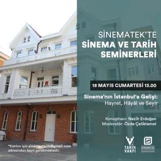 The fifth session of the Cinema and History Seminars, organized by the History Foundation and Sinematek Cinema/House, took place on May 18, 2024, at 1:00 PM. Nezih Erdoğan from Istanbul Istinye University was the speaker, and Özde Çeliktemel from Boğaziçi University moderated. The talk, titled "The Arrival of Cinema in Istanbul: Awe, Imagination, and Spectatorship," explored early cinema audience experiences. The event was held at Sinematek Cinema/House Kadıköy and saw a large turnout.
