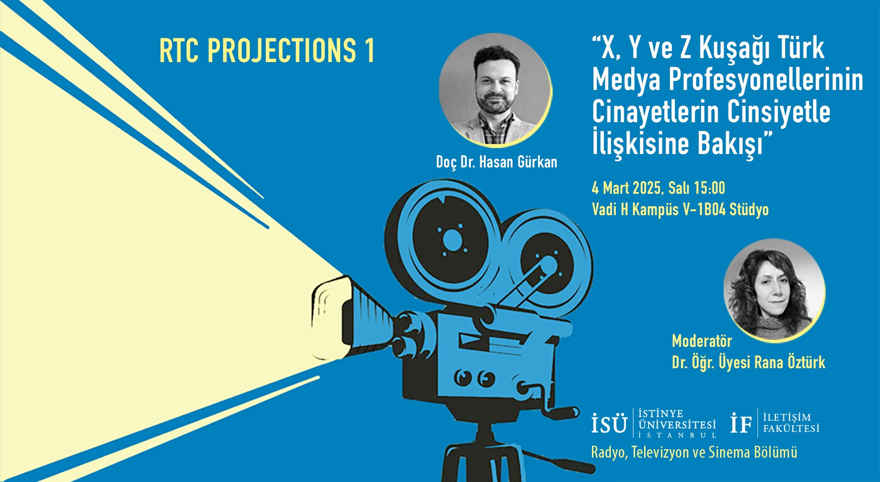 While the RTC Projections series brings academic research to a wider audience, it also fosters critical discussions. On Wednesday, March 12, at 2:00 PM, Dr. Aslı Ildır will deliver a talk titled "Digital Platforms and the Changing Culture of Viewership," exploring the transformation of audience habits in the digital media ecosystem. Then, on Wednesday, March 26, at 2:00 PM, Prof. Dr. Nezih Erdoğan will present "From Al-Bait al Muzlim to Waliczky’s Imaginary Cameras: Rethinking the Apparatus," delving into the evolving meanings of vision and cinema throughout history.