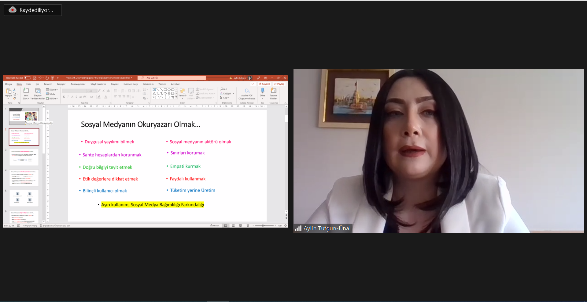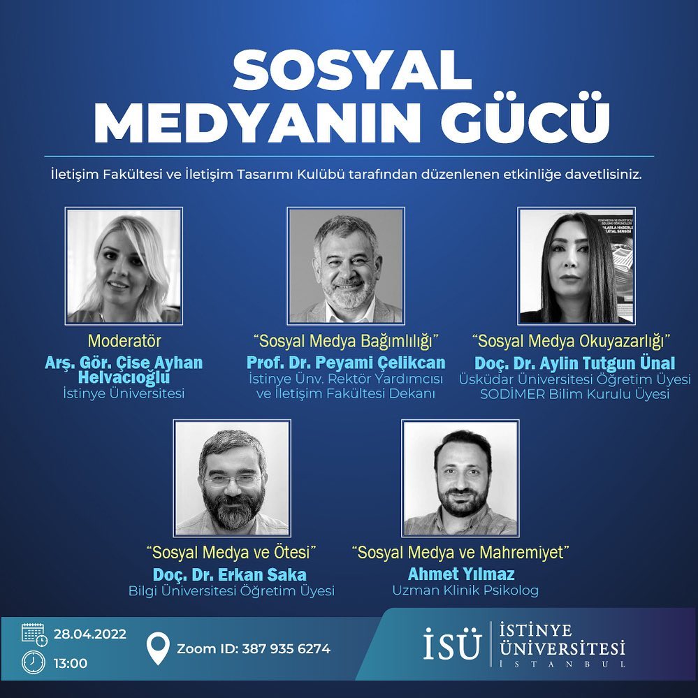 In the event, Istinye University Faculty of Communication Dean Prof. Dr. Peyami Çelikcan, Bilgi University Faculty Member Assoc. Dr. Erkan Saka, Üsküdar University Faculty Member and SODİMER Science Board Member Assoc. Dr. Aylin Tutgun Ünal and Clinical Psychologist Ahmet Yılmaz were the speakers. New Media and Communication Department Research Assistant Çise Ayhan Helvacıoğlu was the moderator of the event.