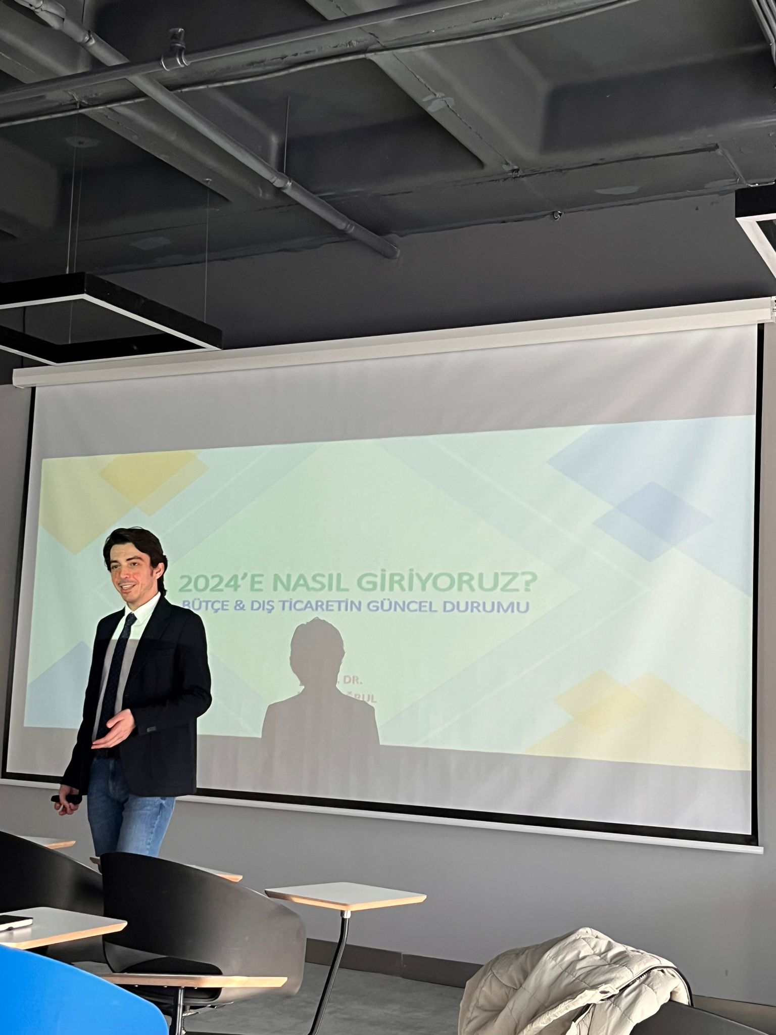 The event titled "How Do We Enter 2024? Current Status of Budget and Foreign Trade", organized by the Department of Economics, was attended by Boğaziçi University Faculty Member Assoc. Dr. It was held with the participation of Melik Ertuğrul. Assoc. Dr. Melik Ertuğrul explained his predictions for 2024 by talking about the current situation of the budget and foreign trade.