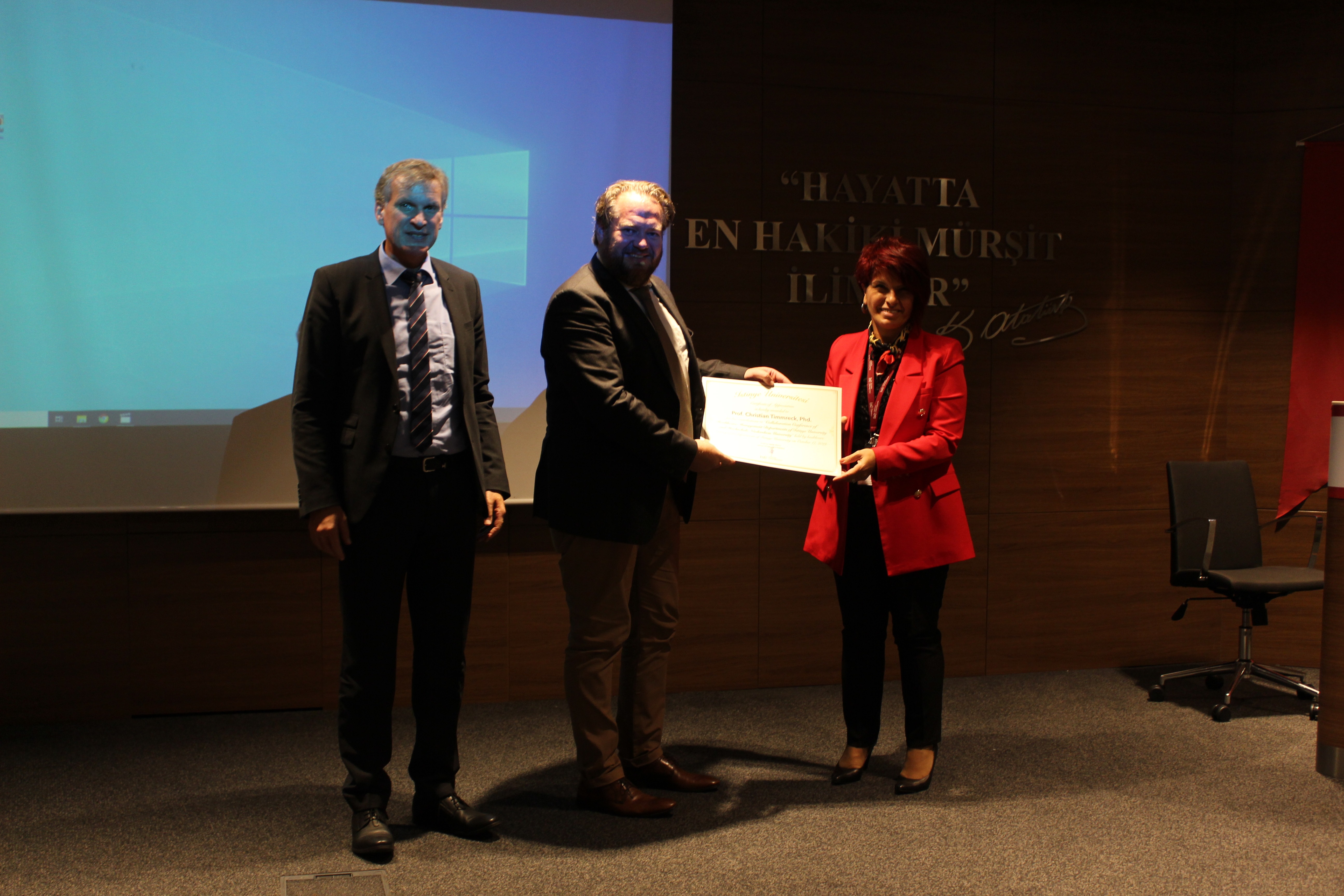 In 17:09.2019 Istinye University and Hochschule Niederrhein University of Applied Sciences Collaboration Conference was held at Topkapi Campus of our University. Dean of the Hochschule Niederrhein University of Applied Sciences, Prof.Dr. Christian Timmreck, Dr. Prof. Hubert Otten, Vice Rector Dr. Erdal Karaöz, Head of Health Management Department Dr. Gülhan Kalmuk, Head of Physiotherapy and Rehabilitation Department Doç. Dr. Yasemin Çırak and Faculty Member Pınar Özbilen. At the opening reception, Hochschule Niederrhein University of Applied Sciences Dean of the Faculty of Health Sciences. Dr. Christian Timmreck provided detailed information about the faculty and the health management department. İsmail Çiftçi, Director of International Programs, presented the university. After the opening reception, R & D laboratories, application laboratories and classrooms were visited and information was provided on site.