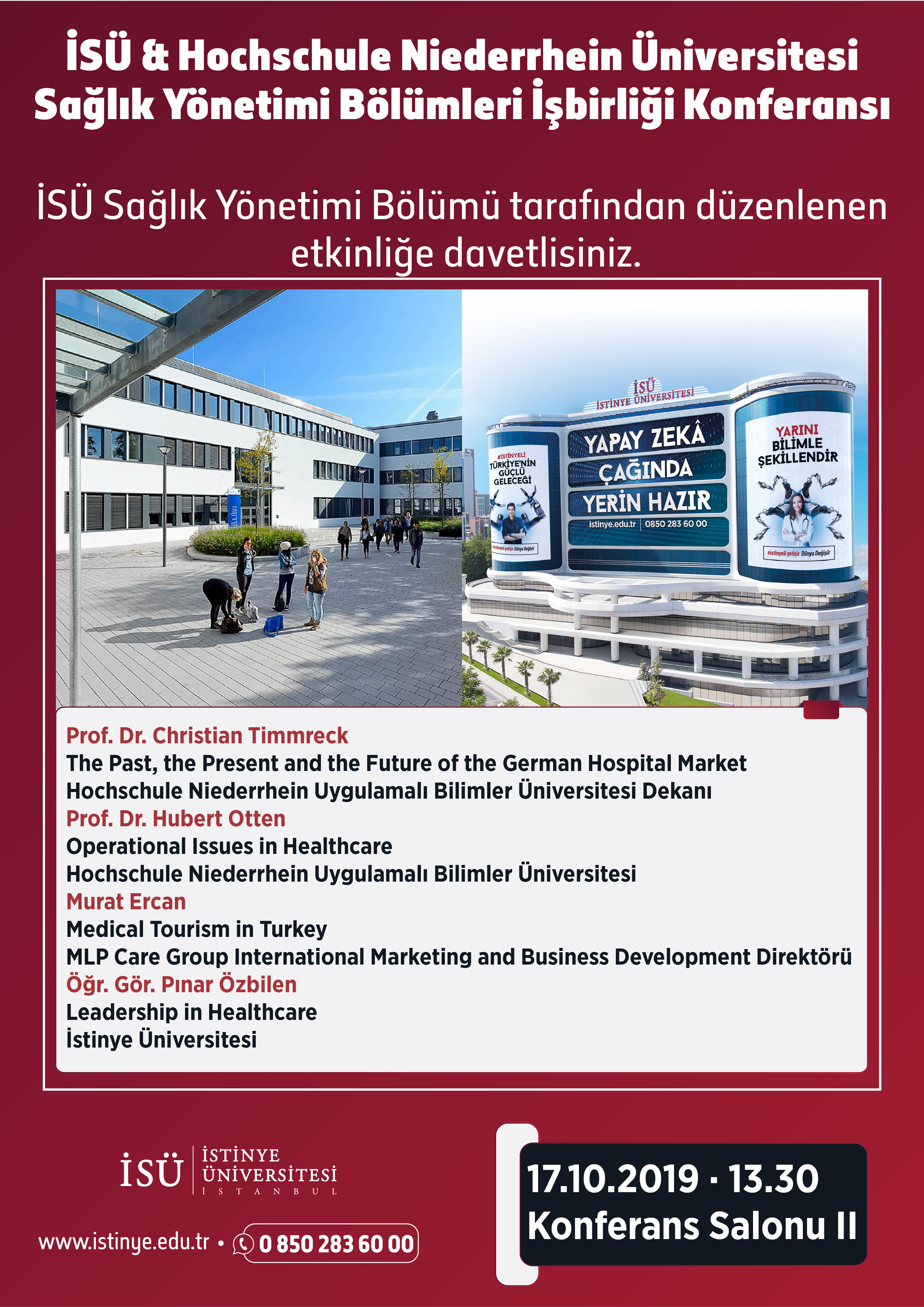 A collaboration conference was held after the campus tour. Head of Health Management Department Dr. Gülhan Kalmuk, in his opening speech, mentioned the possible contribution of the possible cooperation to both universities. Afterwards, he introduced the department and informed the visiting faculty members about the opportunities offered to our students. Prof. Dr. Christian Timmreck, Dr. Hubert Otten, Murat Ercan, International Marketing and Business Development Director of MLP Care Group and Pınar Özbilen, İstinye University, contributed with their presentations. In his presentations Dr. Christian Timmreck gave information about Germany's general health and insurance system and DRG system. Dr. Hubert Otten gave information about the technological structures and software programs used in the field of Medical Material Movements and Logistics. Mr. Murat Ercan "Evolution of Health Tourism in Turkey", the lecturer Pinar Özbilen "Health Leadership- Emotional Intelligence" They performed their presentation entitled.