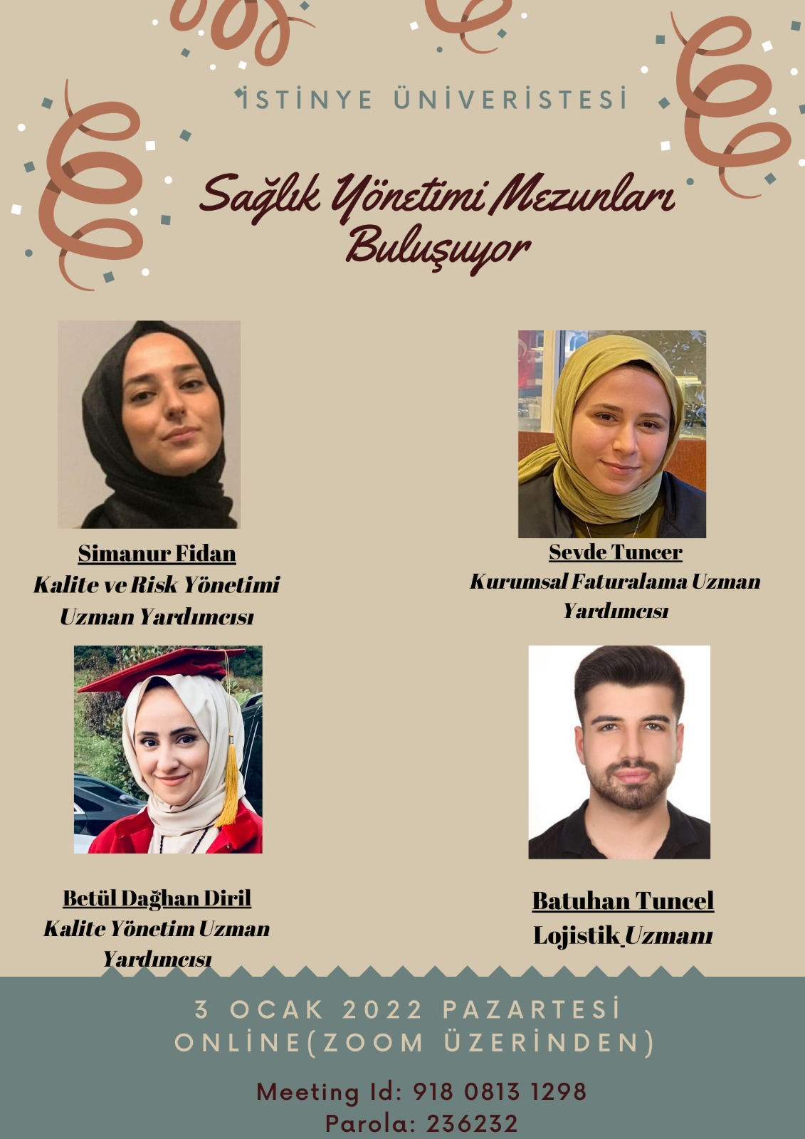 As Istinye University Department of Health Management, we have taken the first step towards the tradition of meeting with our graduates. We heard from our graduate students about the pros and cons of the health management department, what it adds to them, their expectations in business life and their career goals. In addition, they gave useful advice to their friends studying in the health management department about what to do. It was a productive event with a high level of mutual communication and interaction. We would like to thank Assistant Quality Management Specialist Betül Dağhan Diril, Assistant Quality and Risk Management Specialist Simanur Fidan, Corporate Invoicing Assistant Specialist Zeynep Sevde Tuncer and Liogistics Specialist Batuhan Tuncel, who attended the event by not breaking our invitation.