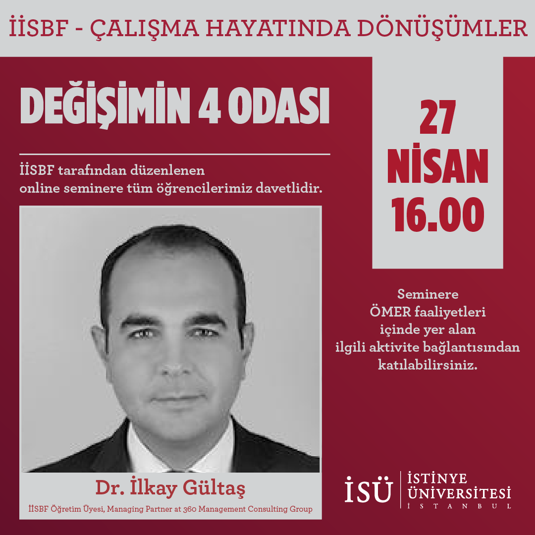 Our Faculty Member İlkay Gültaş organized a webinar on the subject of "change", which is quite remarkable on the basis of organizations and individuals. Gültaş explained 4 rooms of change; pleasure/satisfaction, inspiration/renewal, auto censorship/rejection and chaos/complexity and the participants were tried to be implemented interactively.