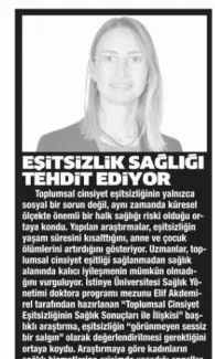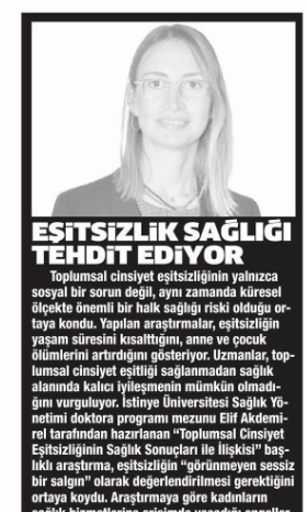 The article titled "The Relationship Between Gender Inequality and Health Outcomes," written by one of our Health Management PhD Program graduates, Elif AKDEMİREL, was featured in the February 17, 2026 edition of the local newspaper "Gazete Bursa."