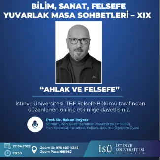 A discussion was held with Hakan POYRAZ on Morality and Philosophy. In the session, philosophy's definition, perception and functioning of the concept of morality were discussed. The difference between the moralist and the moral philosopher and the distinction between morality and ethics were mentioned. In this speech, in which the unity of social and individual morality and its importance were emphasized, Answers to the question "Why should we be moral?" were presented with the support of etymological information.