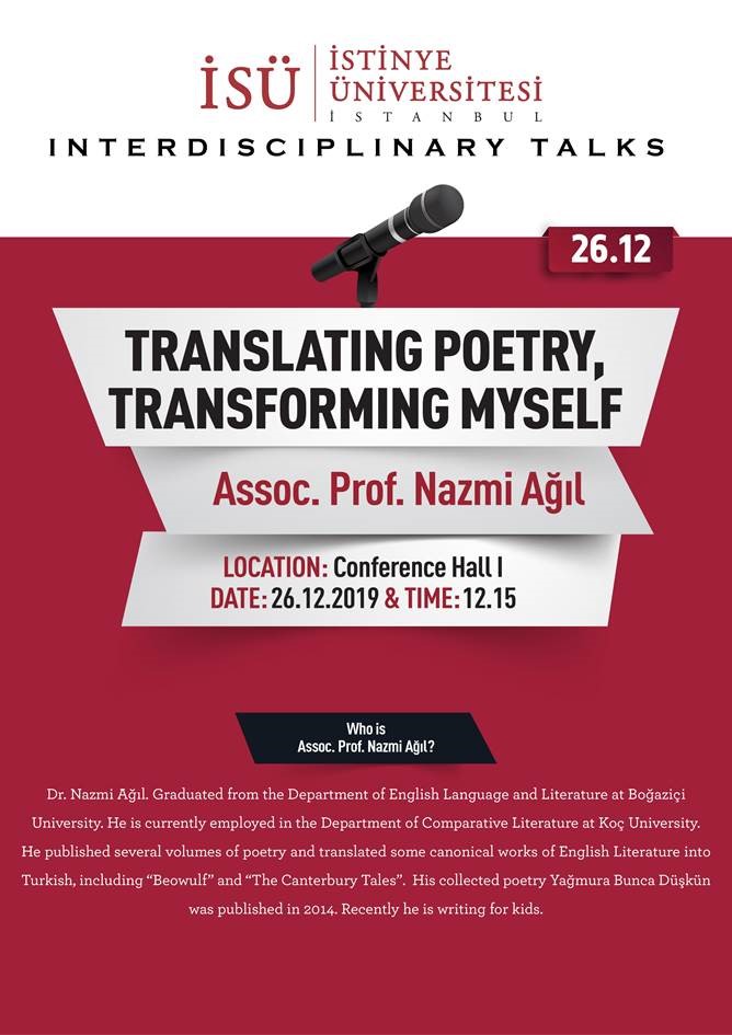 Assoc. Prof. Nazmi AĞIL, gave a lecture titled "Translating Poetry, Transforming Myself" on 26.12.2019.