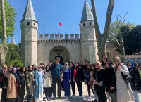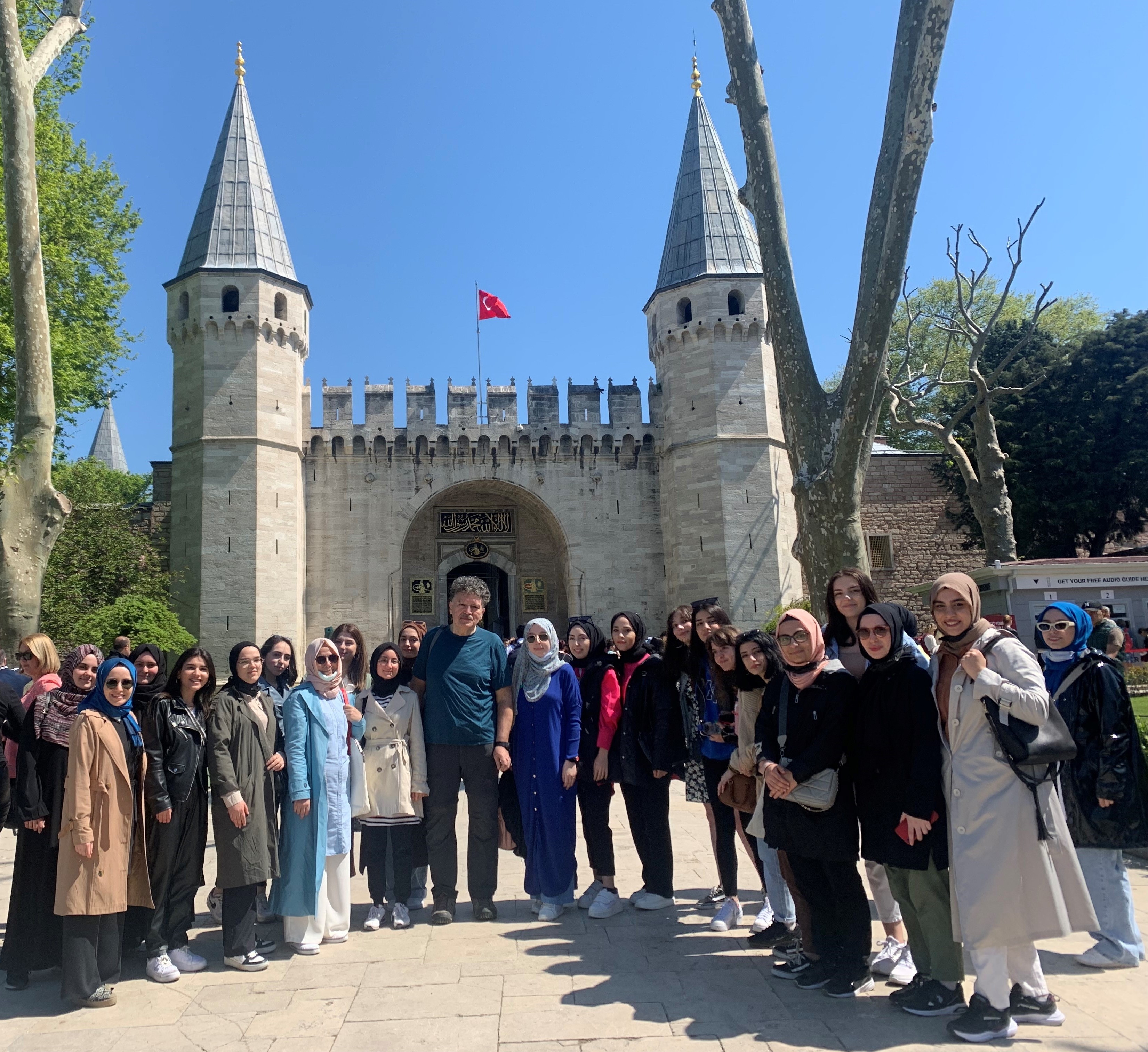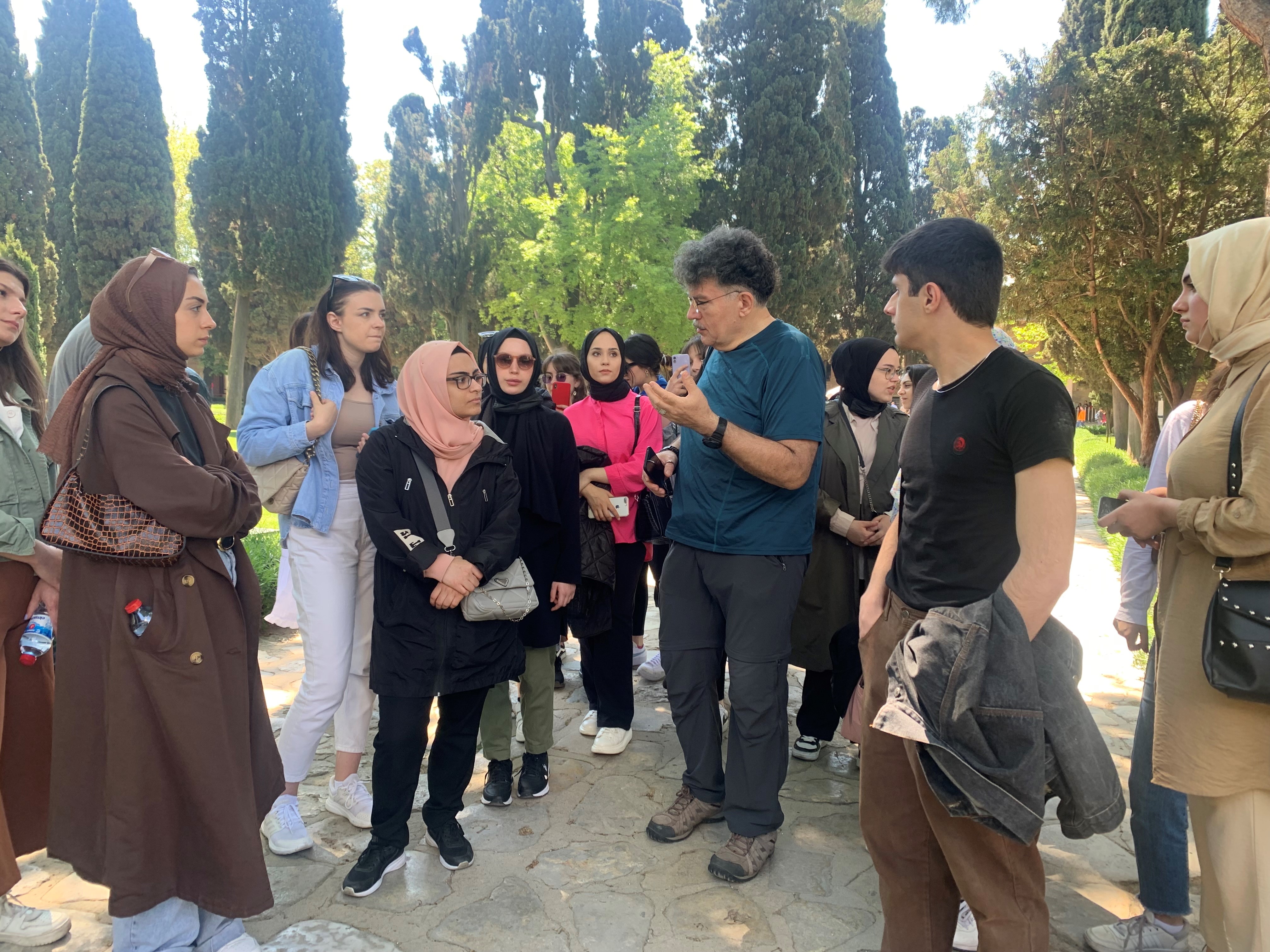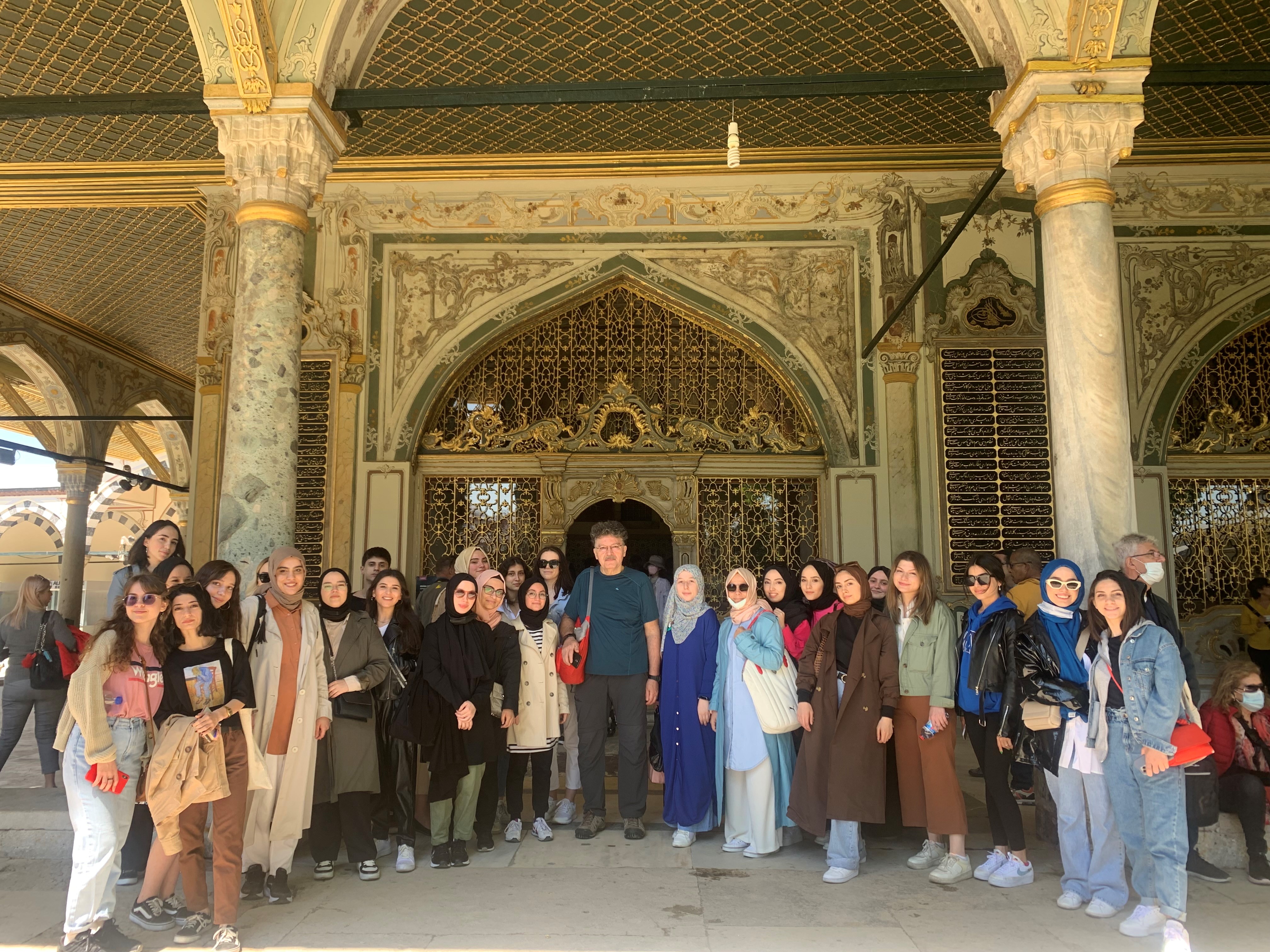 Organized by the Department of Turkish Language and Literature every year since 2018, the event "Practical Lesson at Topkapı Palace" took place on Wednesday, May 11, under the guidance of Ahmet Atilla ŞENTÜRK. Ahmet Atilla ŞENTÜRK, who met with the students of the Turkish Language and Literature Department early in the morning at the German Fountain in Sultanahmet Square, gave information about the historical development of the square since the Roman period. Starting from the palace kitchen in Topkapı Palace, the Divan-ı Hümâyûn, the section with war tools, the section where the clocks are located, the holy relics section, Revan and Baghdad Kiosks were visited. The topics taught to the students during the lesson were seen on-site and explained with the unique expression of Ahmet Atilla ŞENTÜRK.
