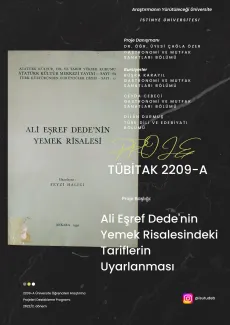 The project titled "Adaptation of the Recipes in Ali Eşref Dede's Food Treatise", of which our undergraduate student Dilan Durmuş from the Department of Turkish Language and Literature, Faculty of Humanities and Social Sciences is among the scholarship holders, was entitled to support within the scope of TÜBİTAK 2209-A - University Students Research Projects Support Program. The advisor of the project advisor is Dr. Çağla Özer, Head of the Department of Gastronomy and Culinary Arts, Faculty of Fine Arts, Design and Architecture, Istinye University.