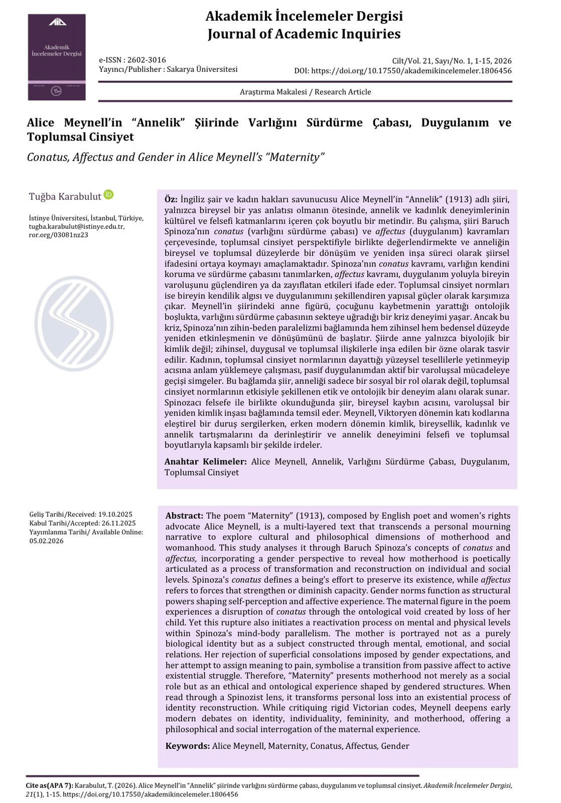 Asst. Prof. Dr. Tuğba Karabulut, Head of the English Language and Literature Department’s new article titled “Dream-like Narration and Imagery in David Gascoyne’s Surrealist Poetry: ‘And the Seventh Dream is the Dream of Isis’” has been published in Current Perspectives in Social Sciences, Volume 29, Issue 4, dated December 2025. The article can be accessed at the following link: