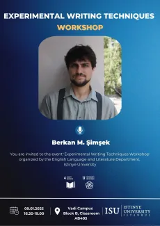 At the event organized by the Department of English Language and Literature on January 9, 2025, writer and translator Berkan M. Şimşek conducted a workshop titled “Experimental Writing Techniques.”