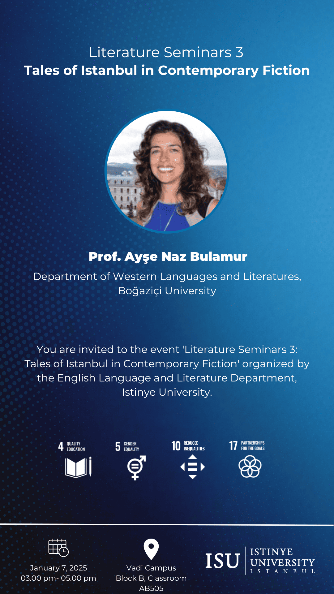 Prof. Dr. Ayşe Naz Bulamur from the Department of Western Languages and Literatures at Boğaziçi University delivered a talk titled “Tales of Istanbul in Contemporary Fiction.”