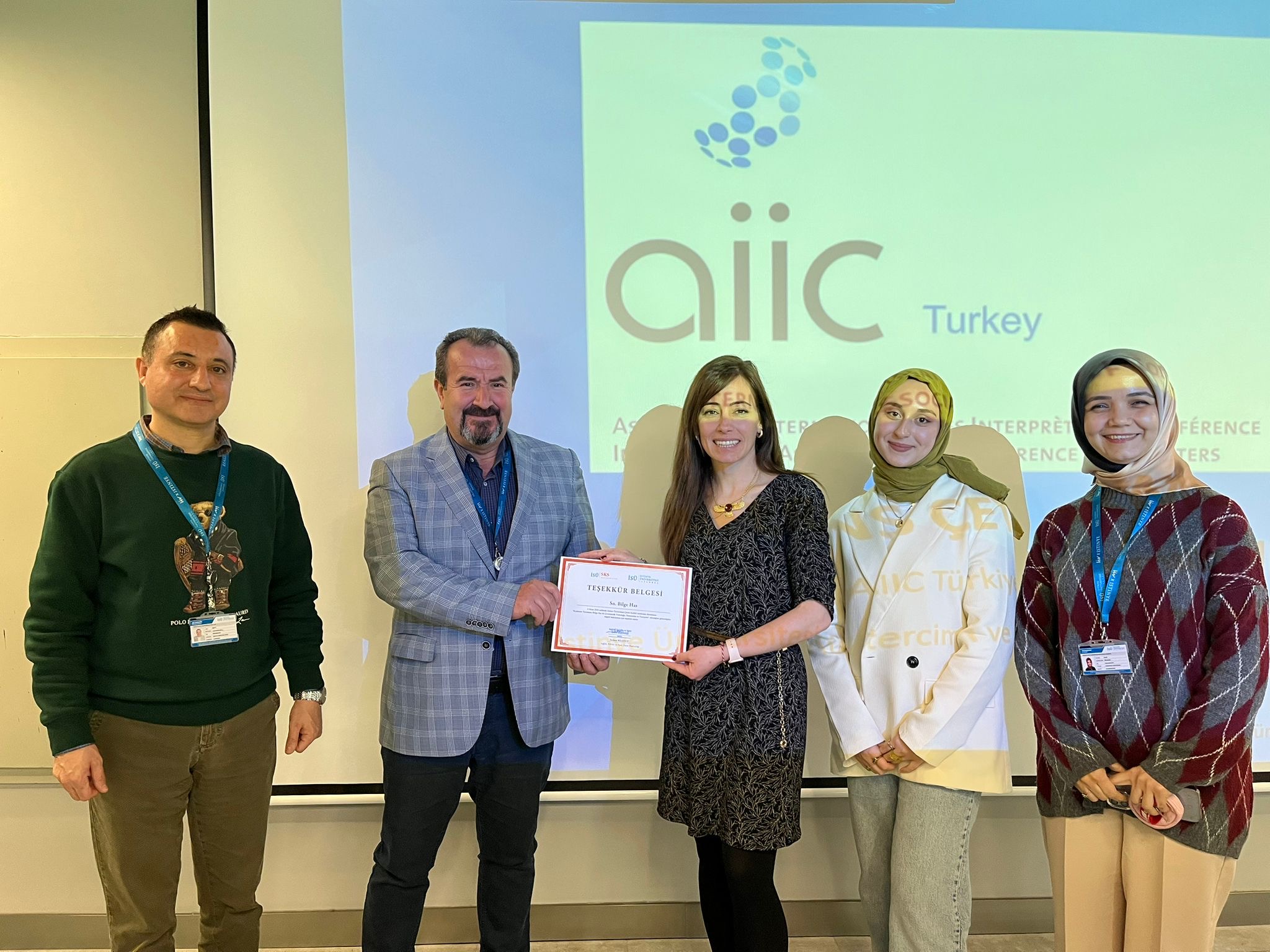 The Istinye University Translation Club hosted Bilge Has, lecturer at Boğaziçi University and AIIC Türkiye Representative, on April 6, 2026. During the event, Has delivered a comprehensive presentation on conference interpreting, sharing her professional knowledge and experience with students and faculty members. She addressed the dynamics of the profession, the skills required for international conference interpreting, current challenges in the sector, and career opportunities in the field, while also responding to questions from the audience. The well-received event provided a valuable platform for discussion and contributed to the professional development of participating students.