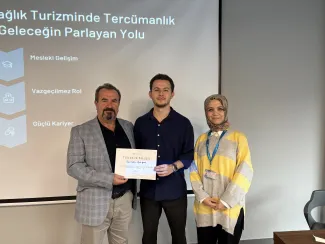 Moderated by Assist. Prof. Dr. Ülkü Kölemen, our talk titled “Meaning Is Everything in Healthcare, Nothing Without an Interpreter!”, in which Şükrü Arda Yanık, a graduate of the Department of English Translation and Interpreting at İstinye University, shared his experiences as a hospital interpreter, was held on 23 December 2025 at the Vadi Campus, AB Block, with the participation of our esteemed faculty members and students.