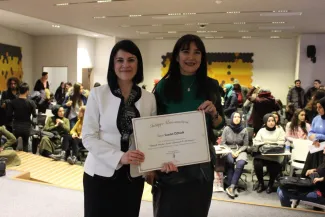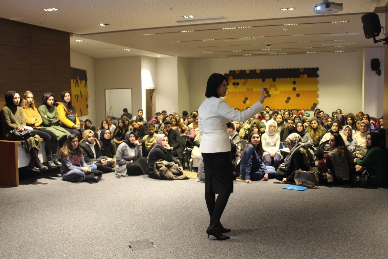 The conference “Youth in Istinye University is Meeting with Saadet Teacher” took place at Topkapı Campus of Istinye University with the participation of Saadet ÖZKAN, Chairman of the Saadet Teacher Association for Struggle with Child Abuse.