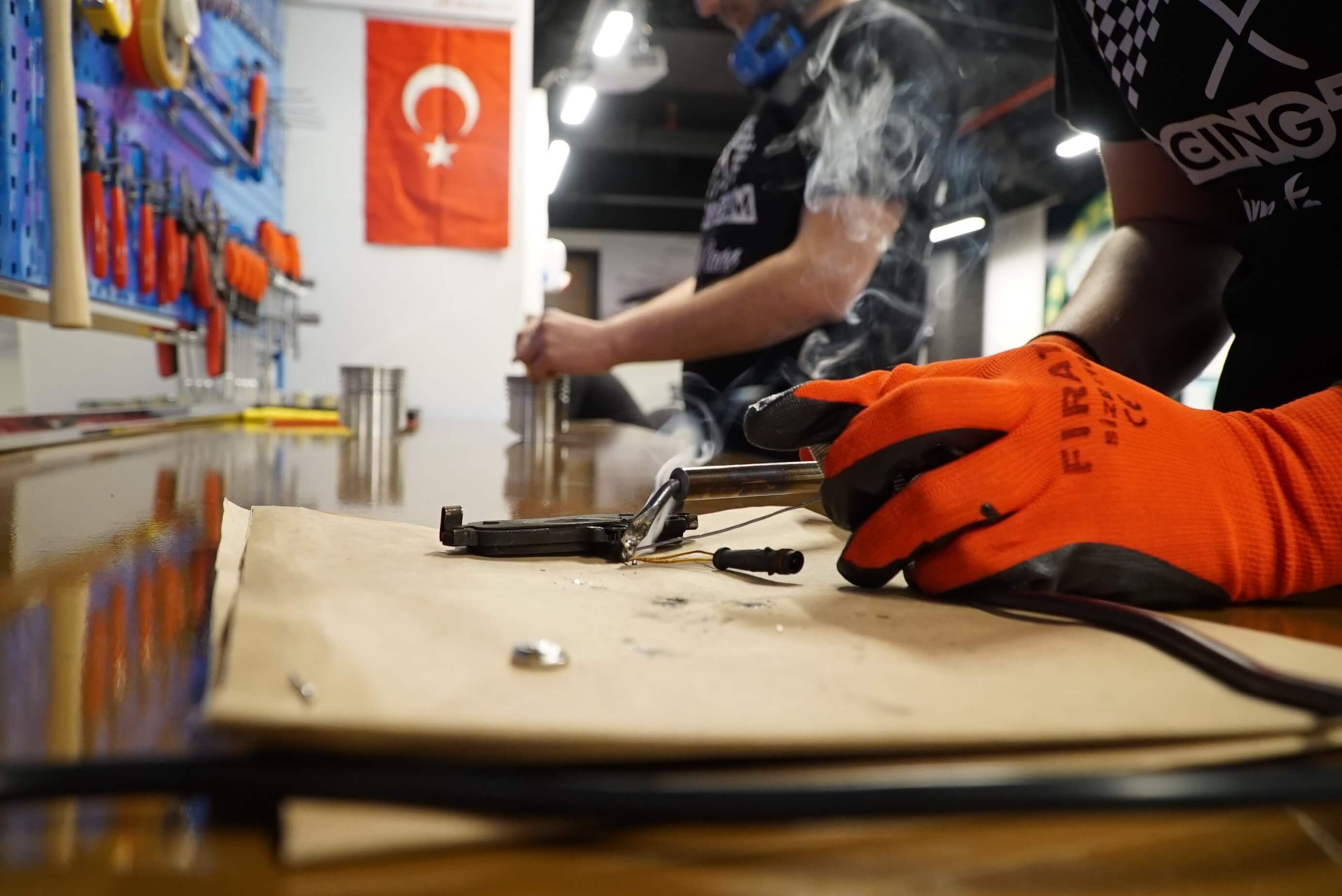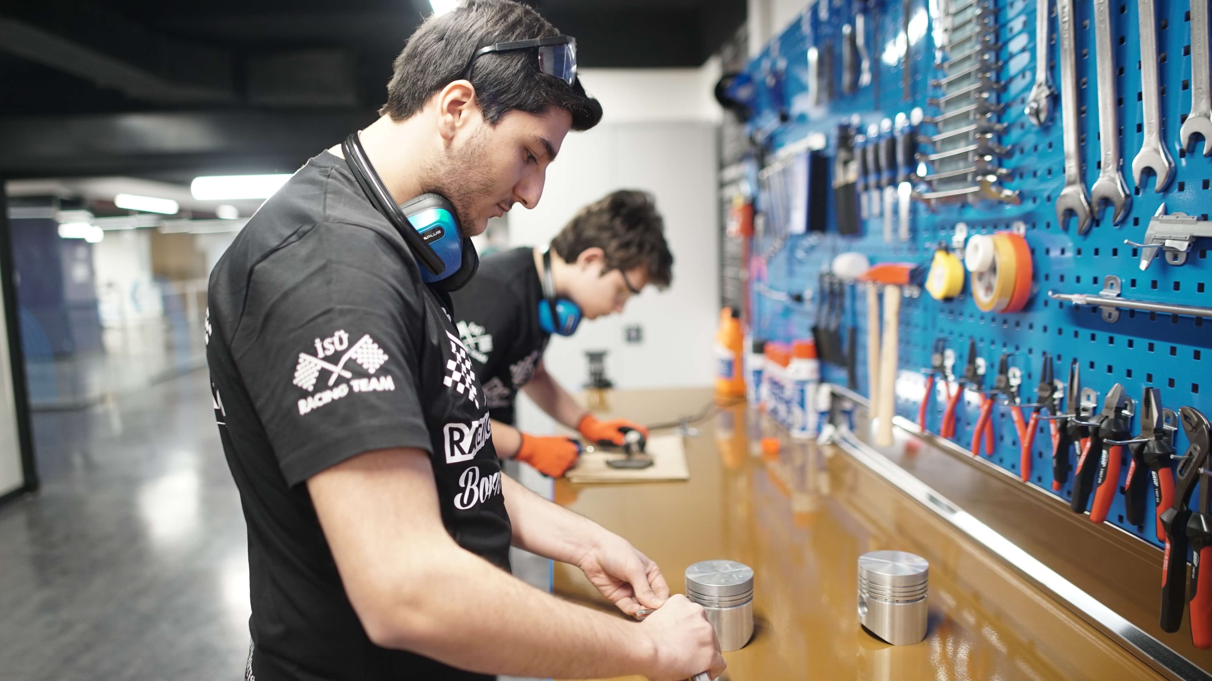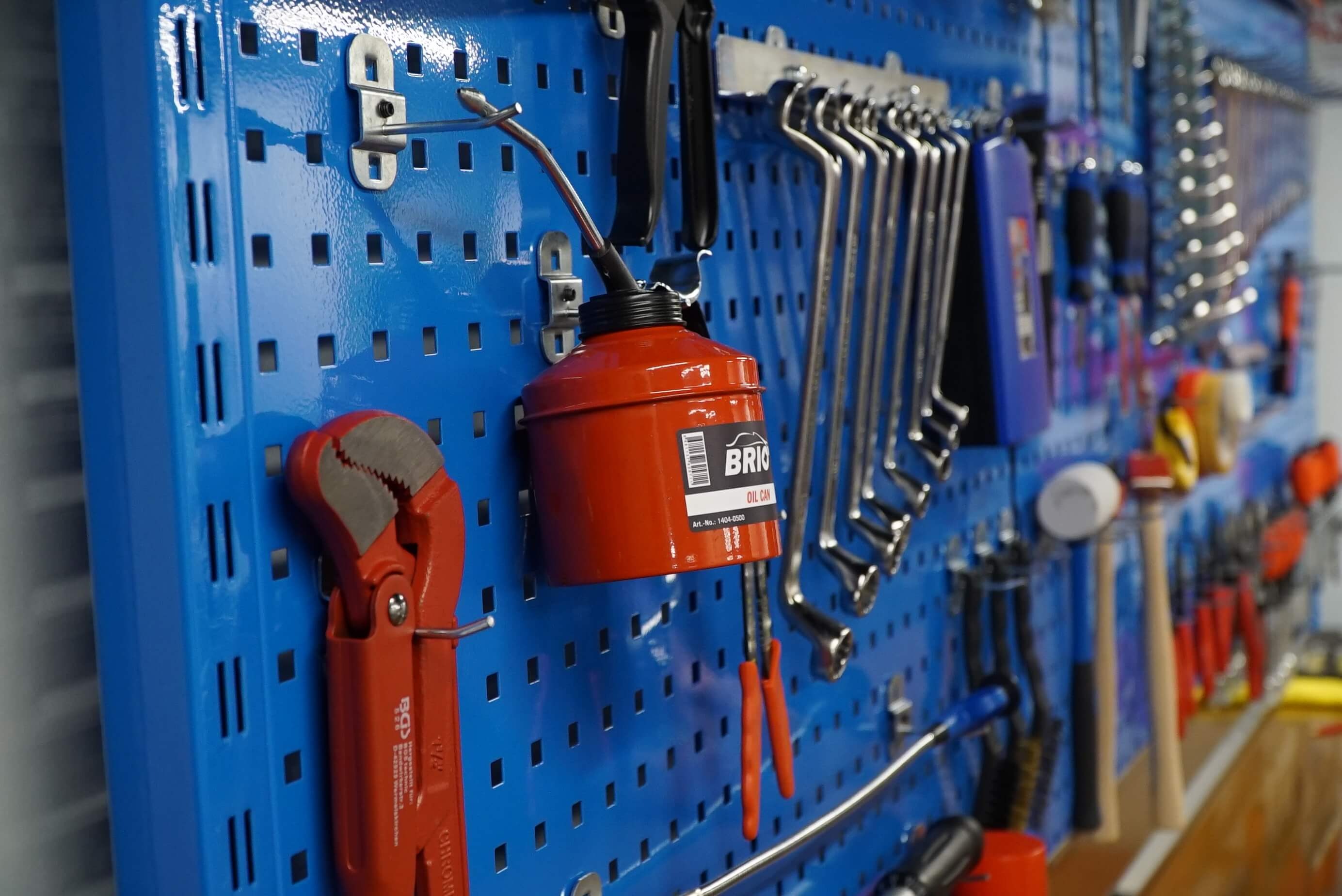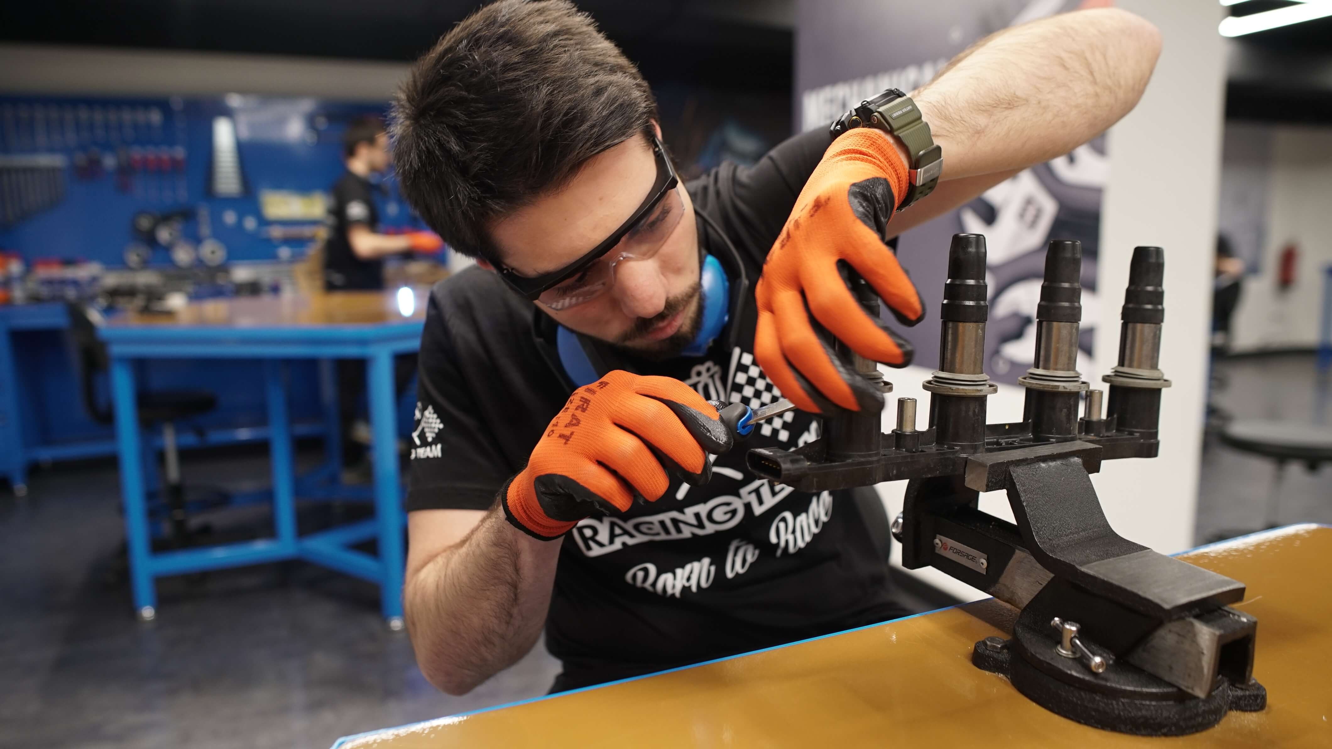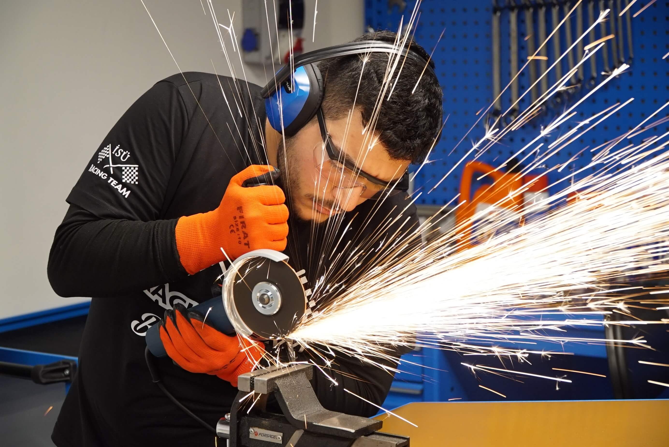 In the "Mechanical Design" section of the laboratory, there are equipment such as welding, soldering, column drill, hand drill, grinding and cutting machine used in classical production processes. In the same section, there are metal profile workbenches, wheeled tool cabinets, hexagonal work benches.