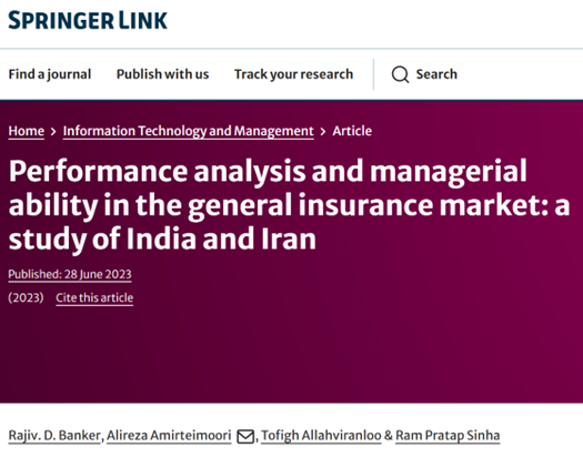 The Article entitled “Performance analysis and managerial ability in the general insurance market: a study of India and Iran” has been published in Information Technology and Management journal.