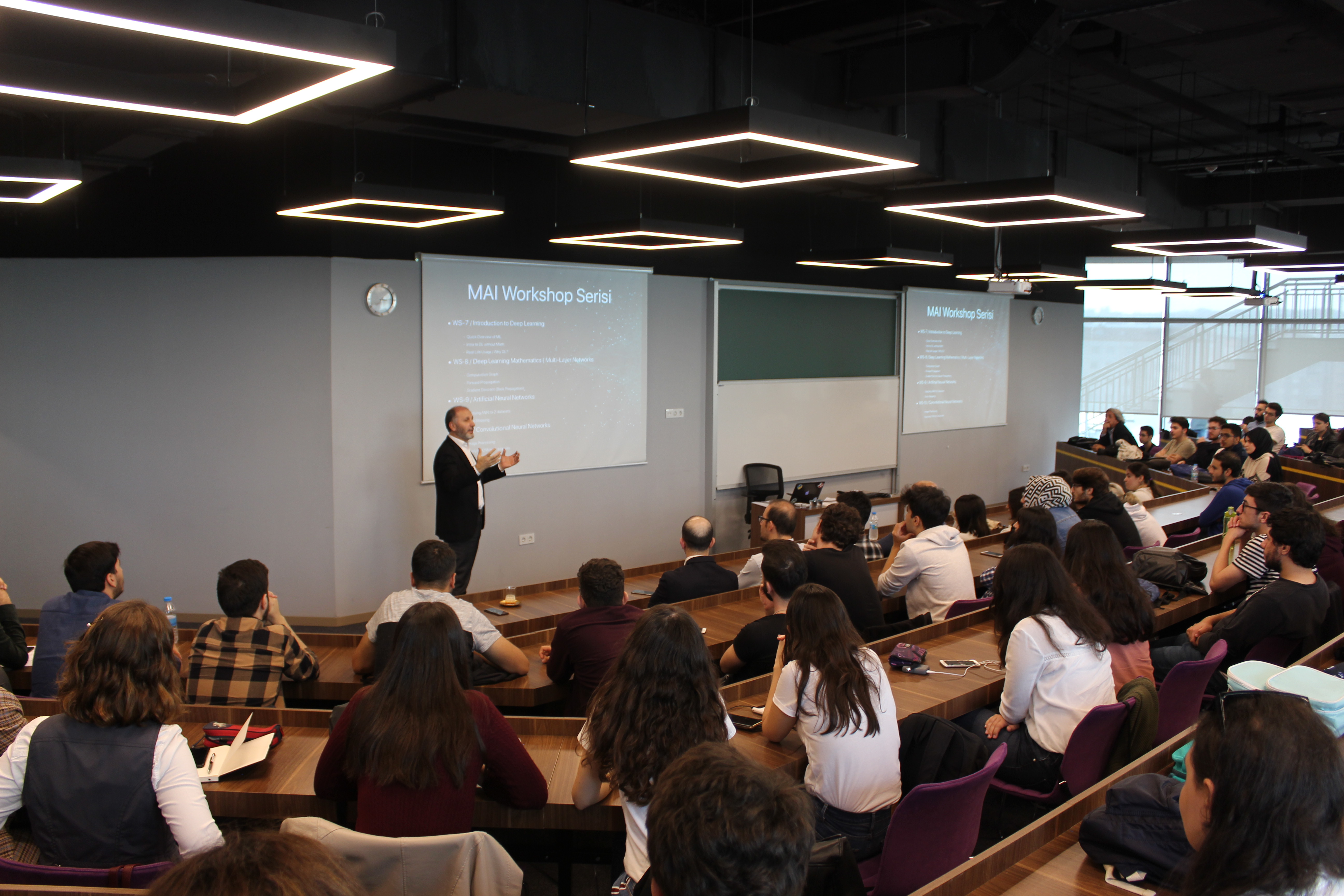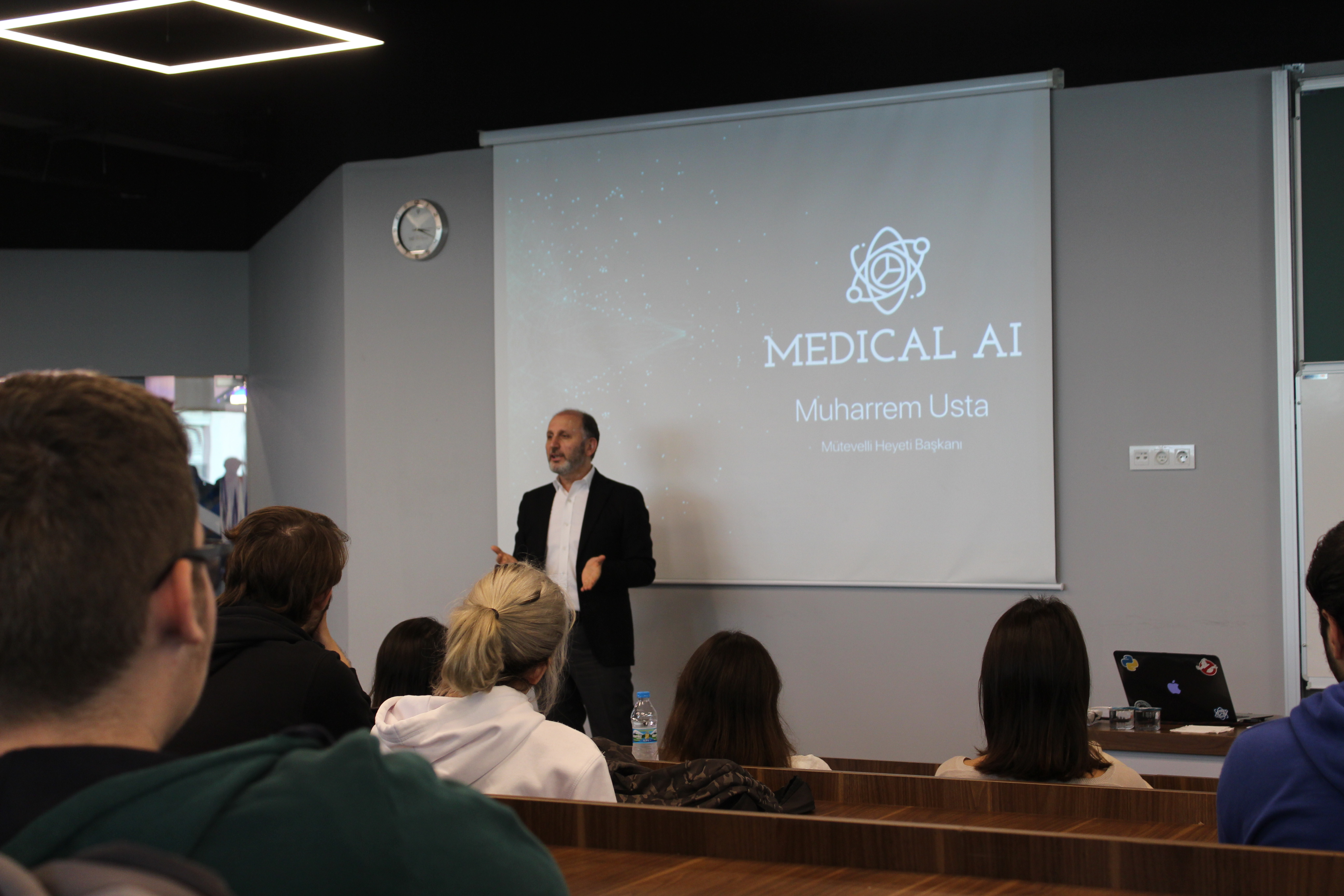 The student club Medical Artificial Intelligence (Medical AI), established as part of İstinye University with the objective to develop artificial intelligence in medicine, kicked off its introduction meeting in the university’s Topkapı campus. Opening speeches were given by Prof. Dr. Çetin Kaya, Engineering Faculty Dean, and Academic Member Dr. Mustafa Mısır, where Dr. Muharrem Usta, Chairman of the University’s Board of Trustees, also gave a speech. Emphasizing that they do science for products, Dr. Muharrem Usta went on to elaborate “The largest investments in the world for artificial intelligence are made in the health sector. Software and computers are essential parts of any health organization. Wherever you go you will always arrive at a point of ultimate artificial intelligence and there is no running away from that. Of course you need to do well in your profession and your core purpose must be to create value. Science is for creating value.”