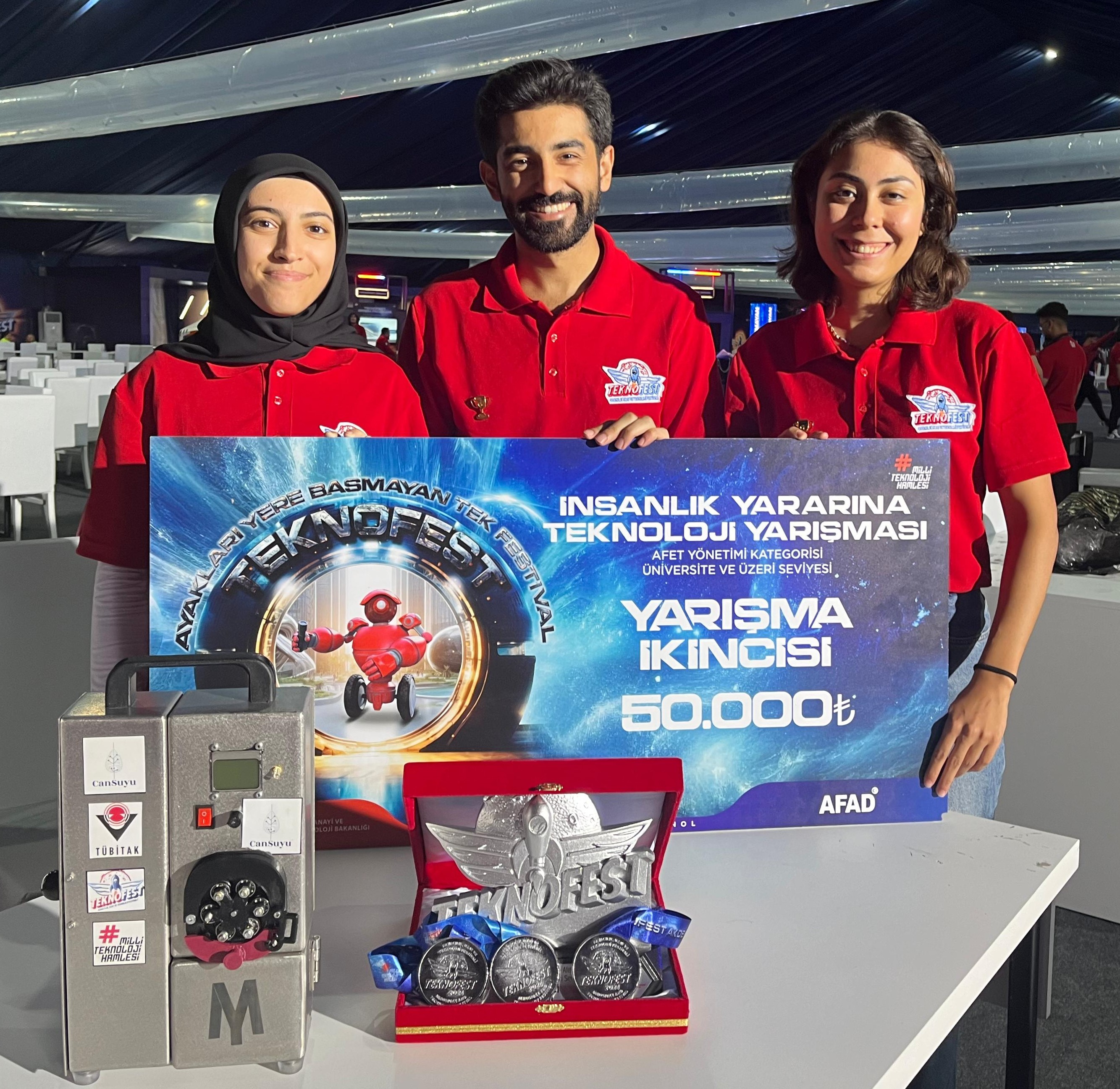 We congratulate Eda Aktaş, one of our Biomedical Engineering students from the Faculty of Engineering and Natural Sciences, Çiğse Nur Eşgi, one of our Computer Engineering students, and Muhammed Kadir Akot, one of our Mechatronics Engineering students, for their success in the IEEE Istinye Cansuyu Team at TEKNOFEST 2024 and wish them continued success.