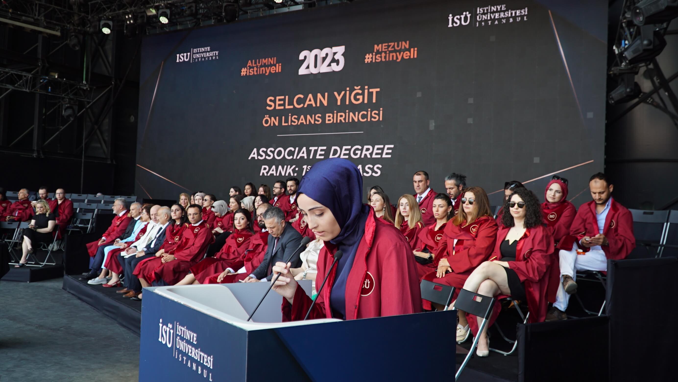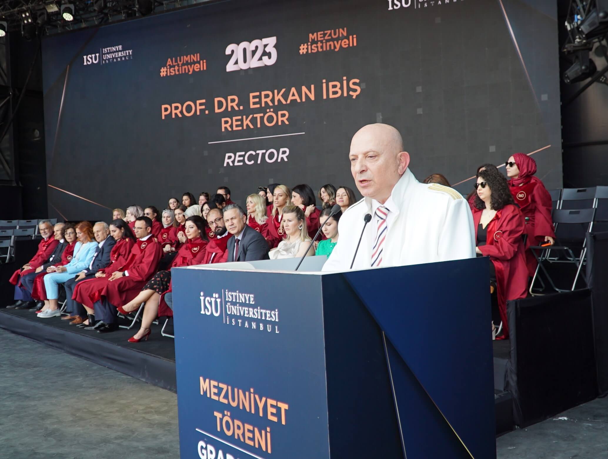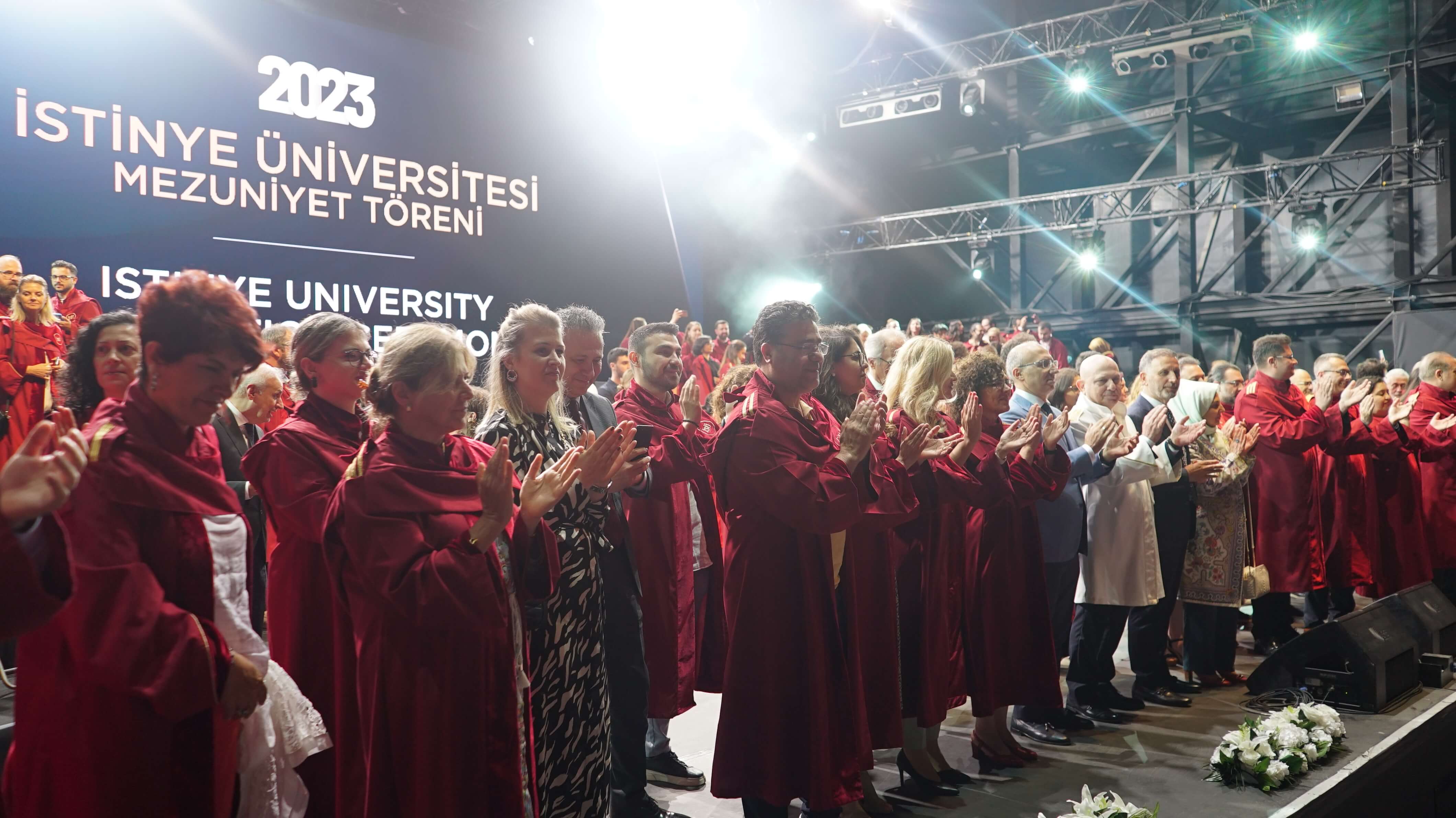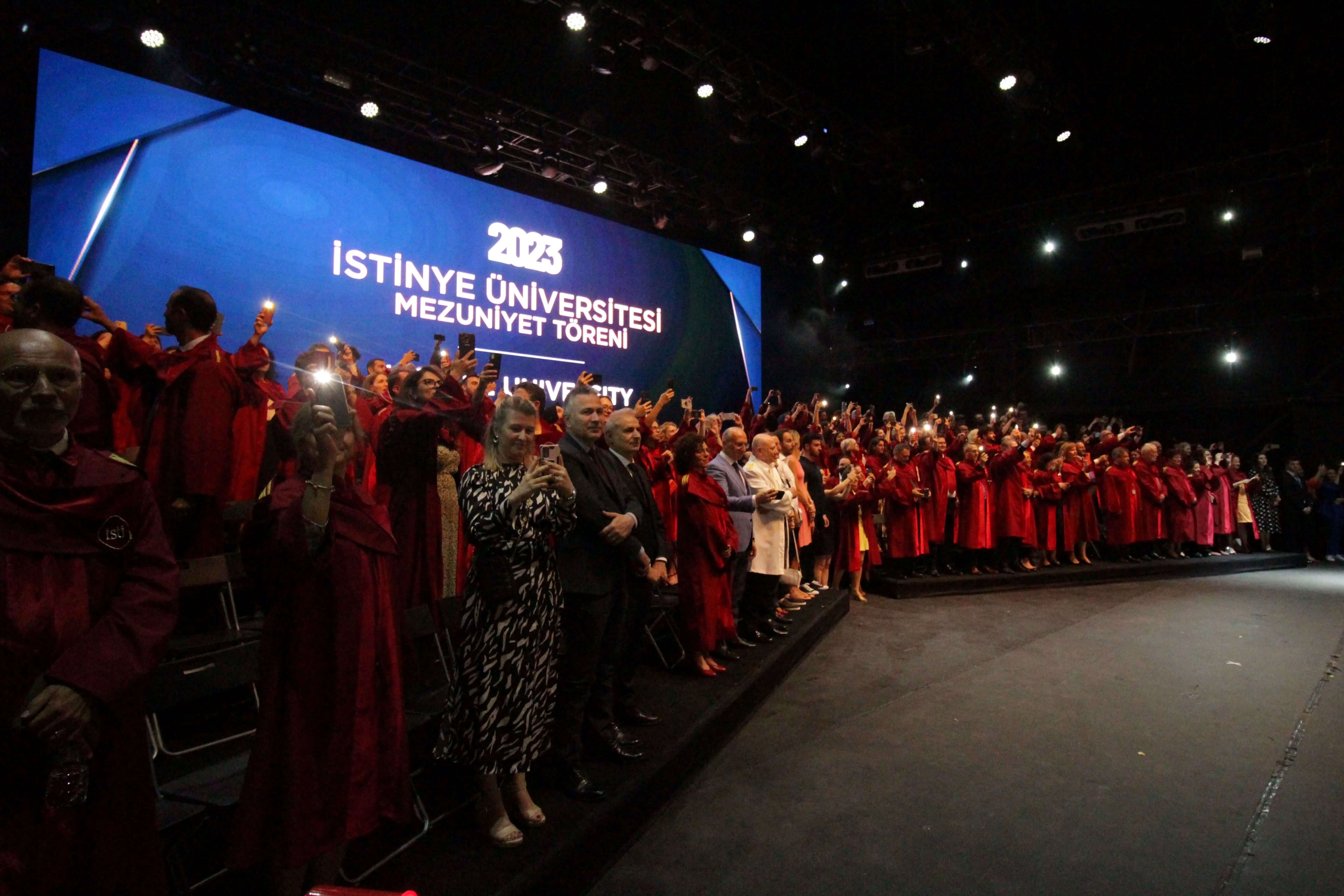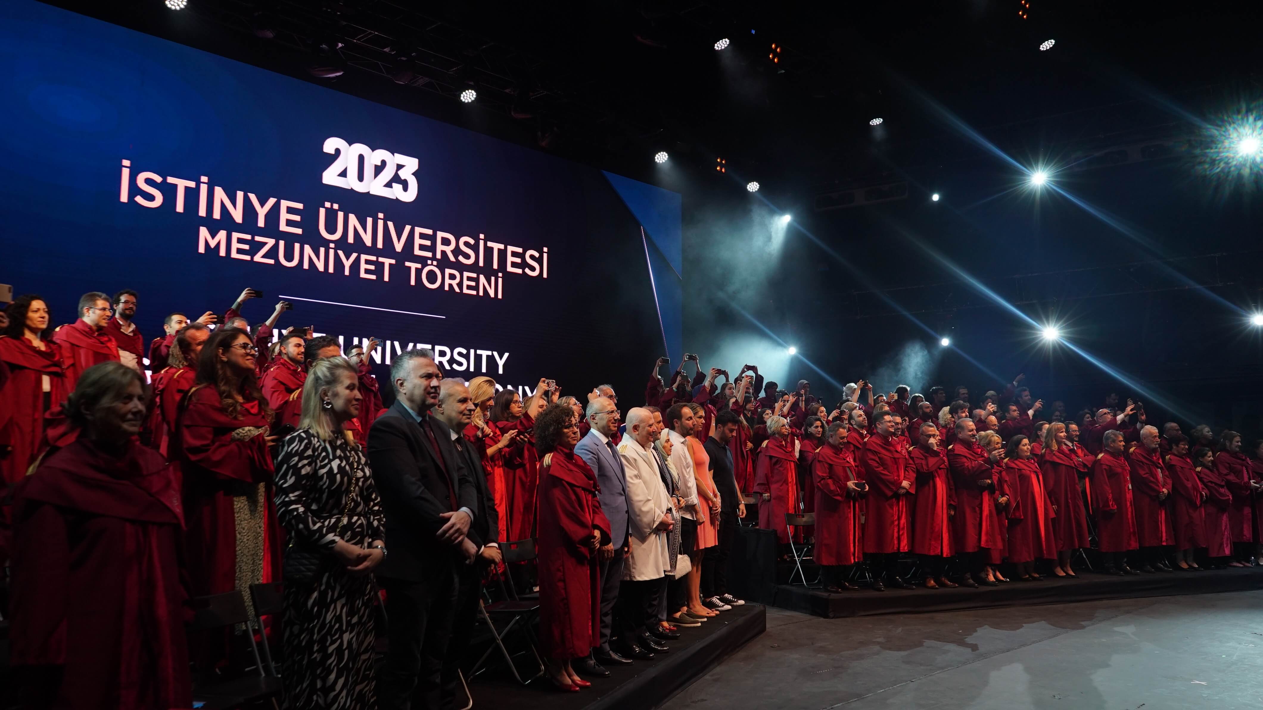 Istinye University's 2023 Graduation Ceremony, which was joyfully celebrated, took place in two sessions at the Turkcell Vadi Open-Air Stage on June 20, 2023. Thousands of graduating students and their families were hosted at this special event, which was attended by Istinye University's Board of Trustees Chairman Dr. Muharrem Usta, Istinye University Rector Prof. Dr. Erkan İbiş, Board of Trustees Members, and esteemed academics.