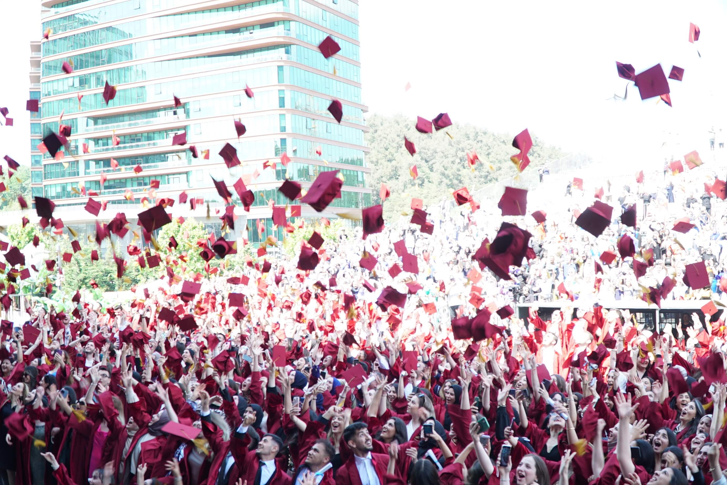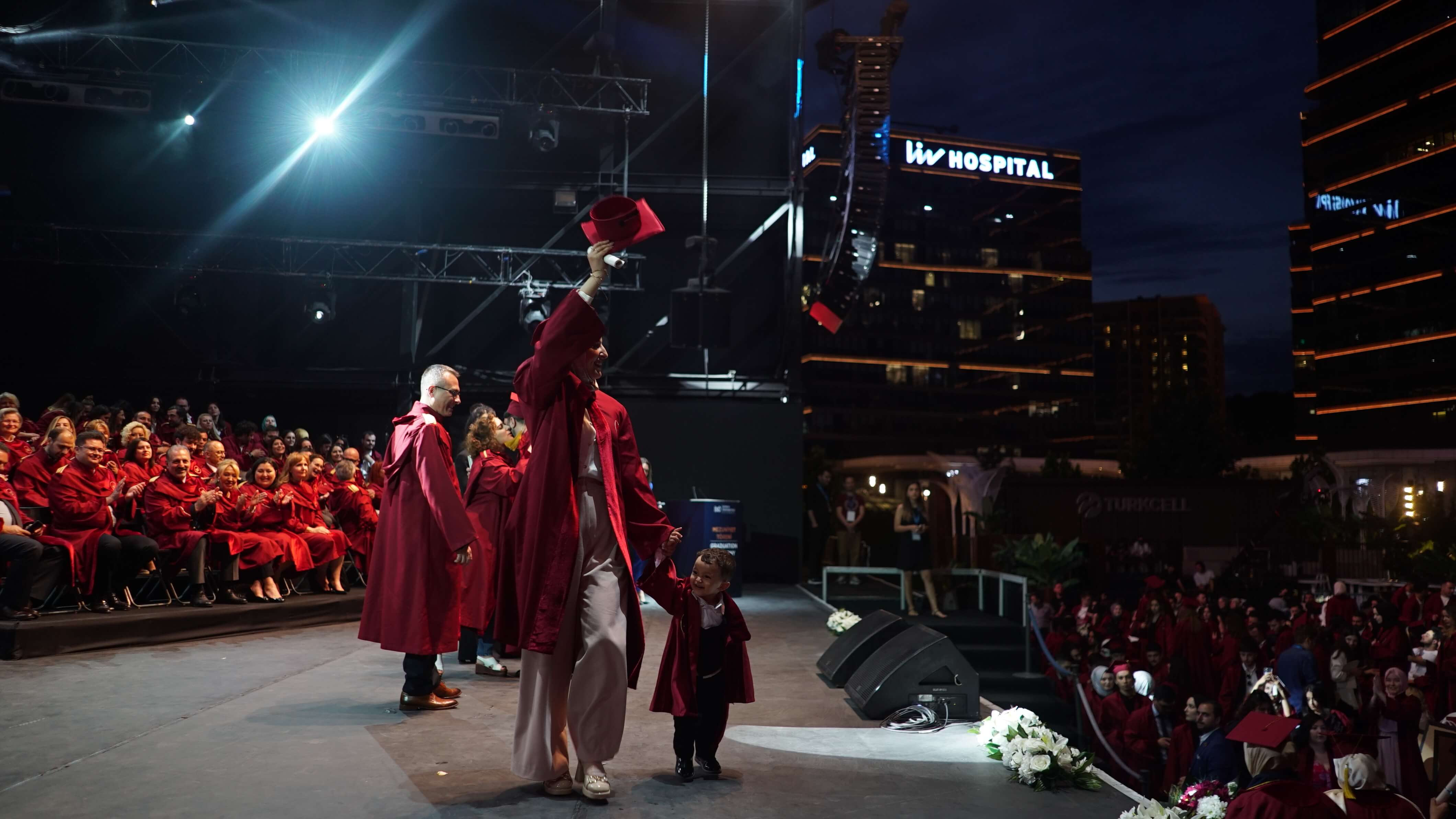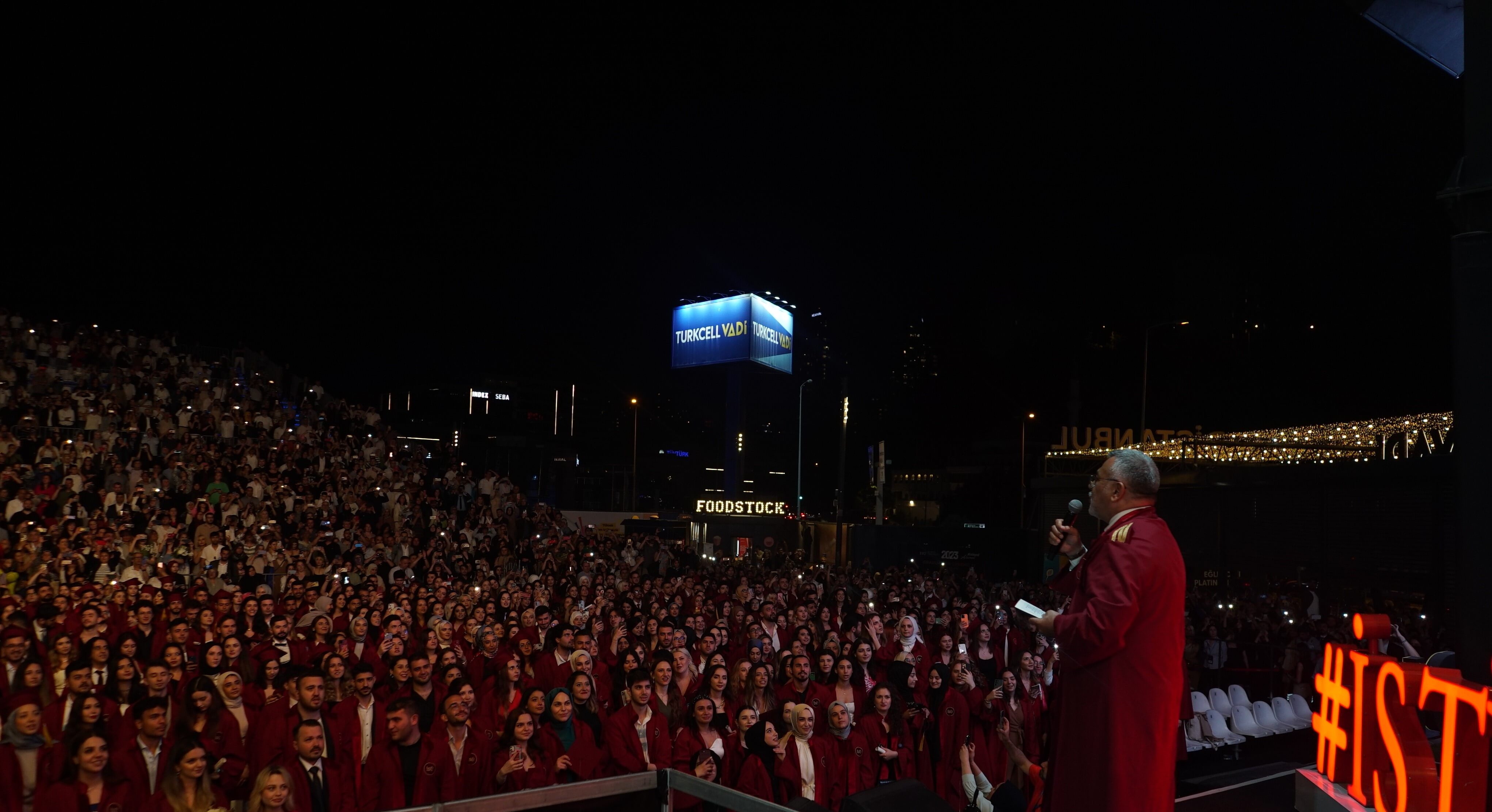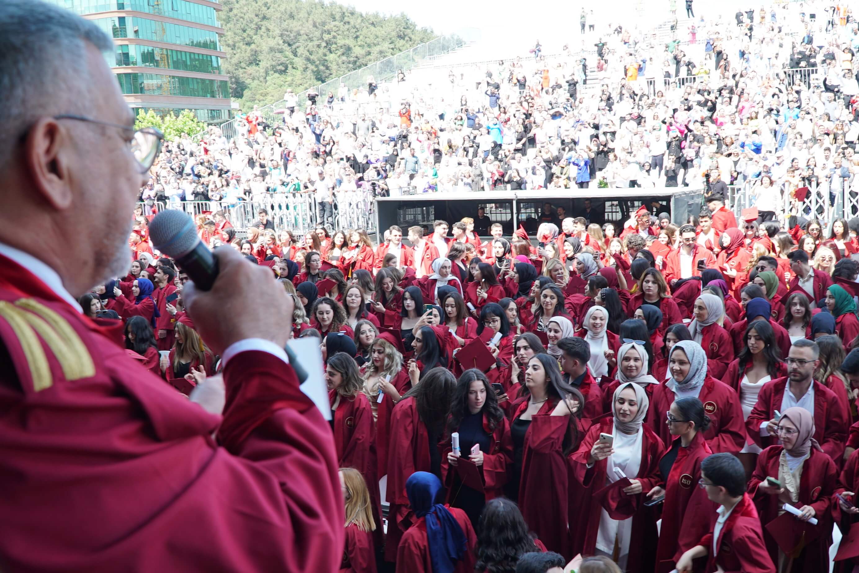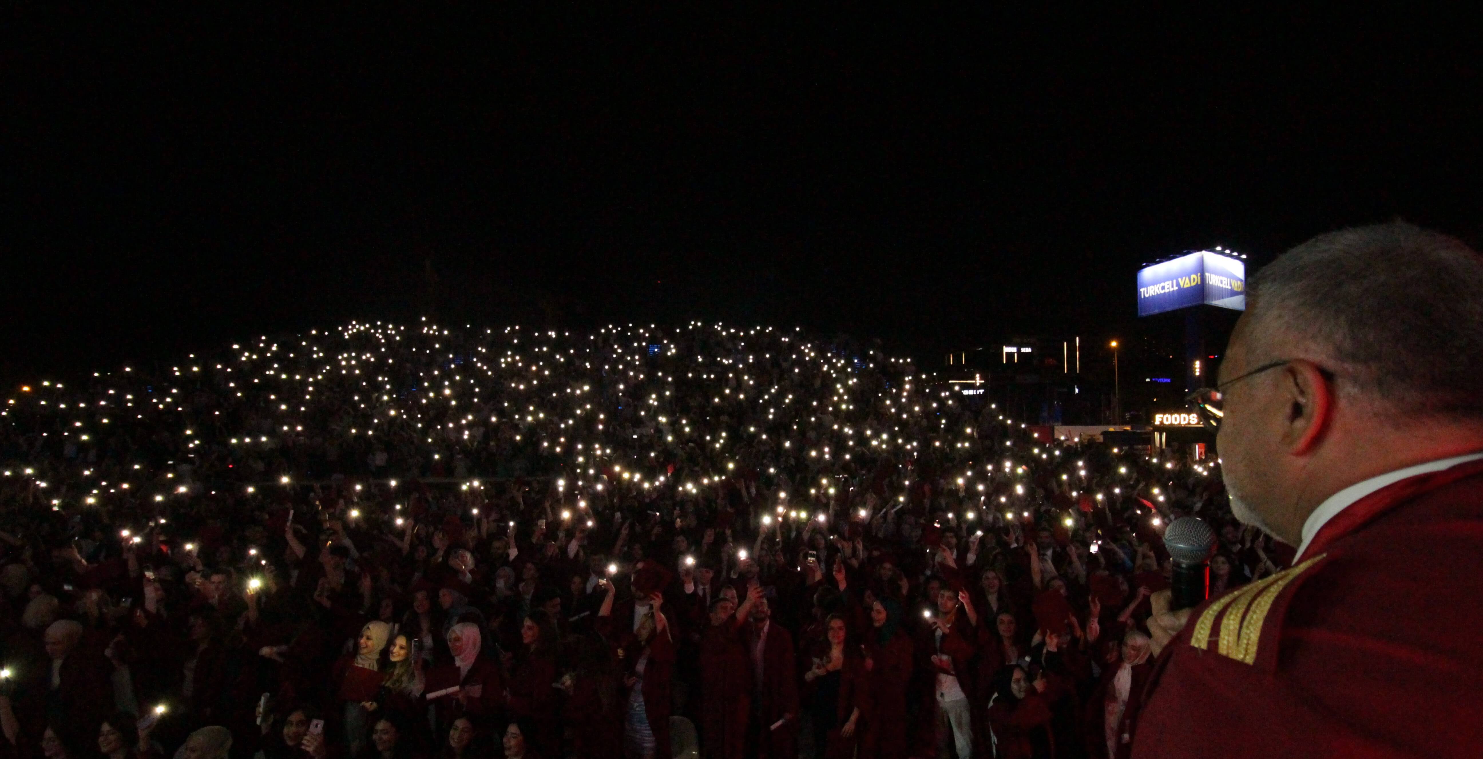 Istinye University's 2023 Graduation Ceremony, which was joyfully celebrated, took place in two sessions at the Turkcell Vadi Open-Air Stage on June 20, 2023. Thousands of graduating students and their families were hosted at this special event, which was attended by Istinye University's Board of Trustees Chairman Dr. Muharrem Usta, Istinye University Rector Prof. Dr. Erkan İbiş, Board of Trustees Members, and esteemed academics.