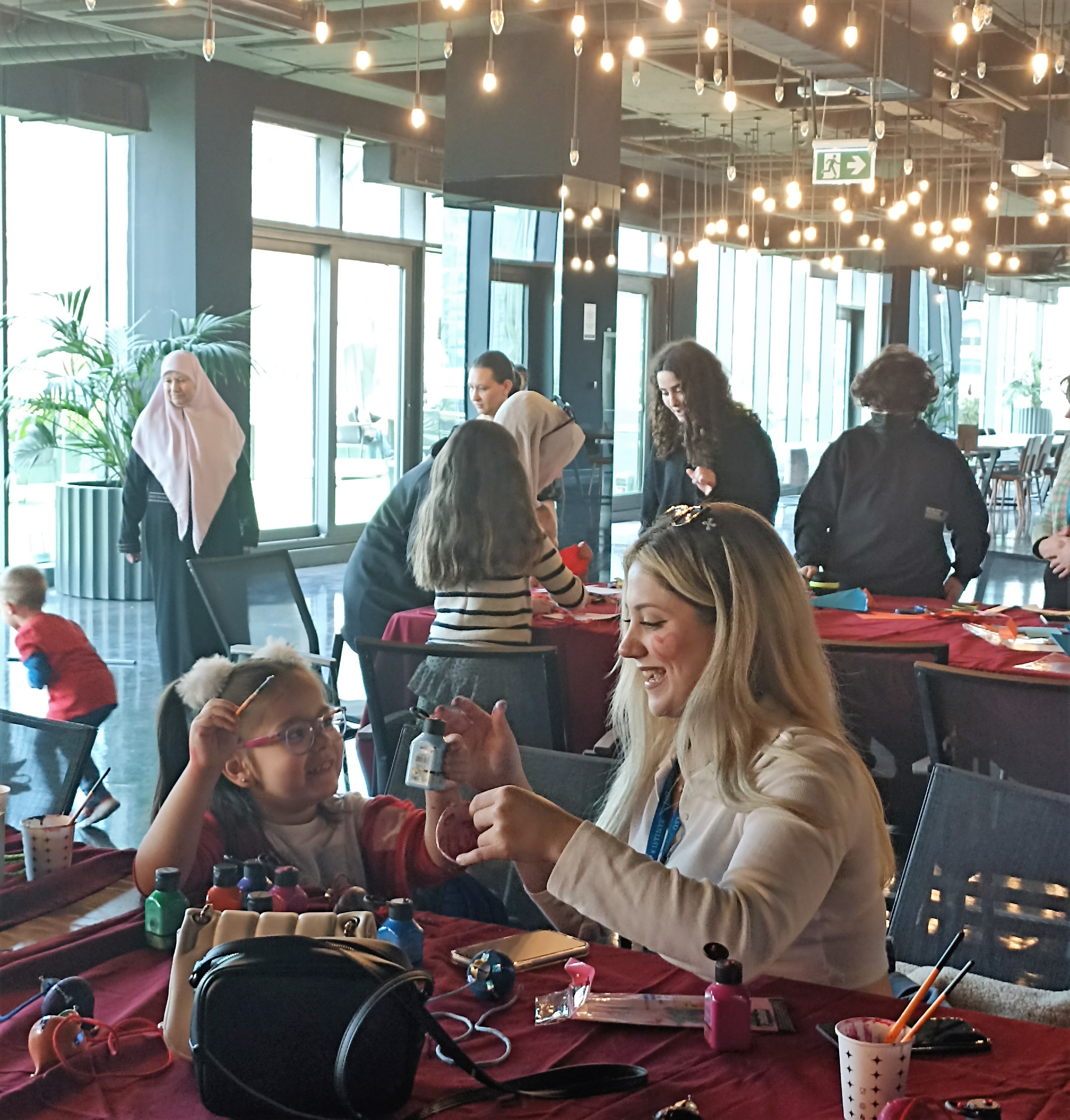 On Tuesday, April 25th, 2023, an exhibition was held consisting of pictures made by the children of the Istinye University community. Following the program and exhibition opening, origami, stone/top spinning painting, and even face painting workshops were also held.
