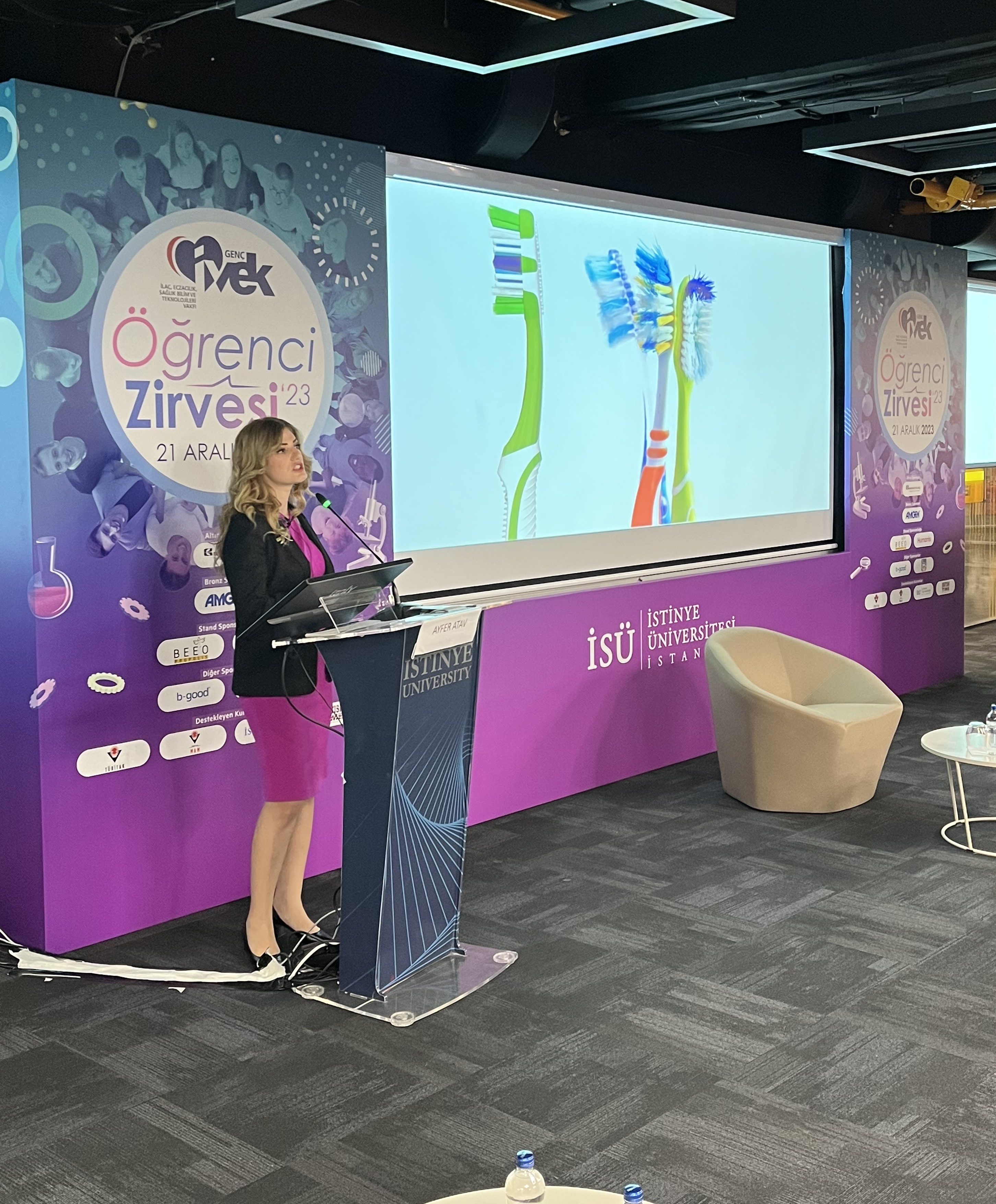In the 3rd and 4th sessions of the Young IVEK Summit at Istinye University, industry experts shared insights: Pharmacist Berat Beran, Chairman of the Board of Berko Pharmaceuticals, discussed the "Journey of a Leading Pharmacist in the Industry - From Past to Future Career." Dr. Bilgen Dölek, Director of Market Access and Reimbursement at Amgen Biotechnology, presented "Biotechnology: The Significant Role of Science in Drug Development," providing motivational information to young science enthusiasts and all participants regarding understanding innovations in the industry and building careers in these fields.