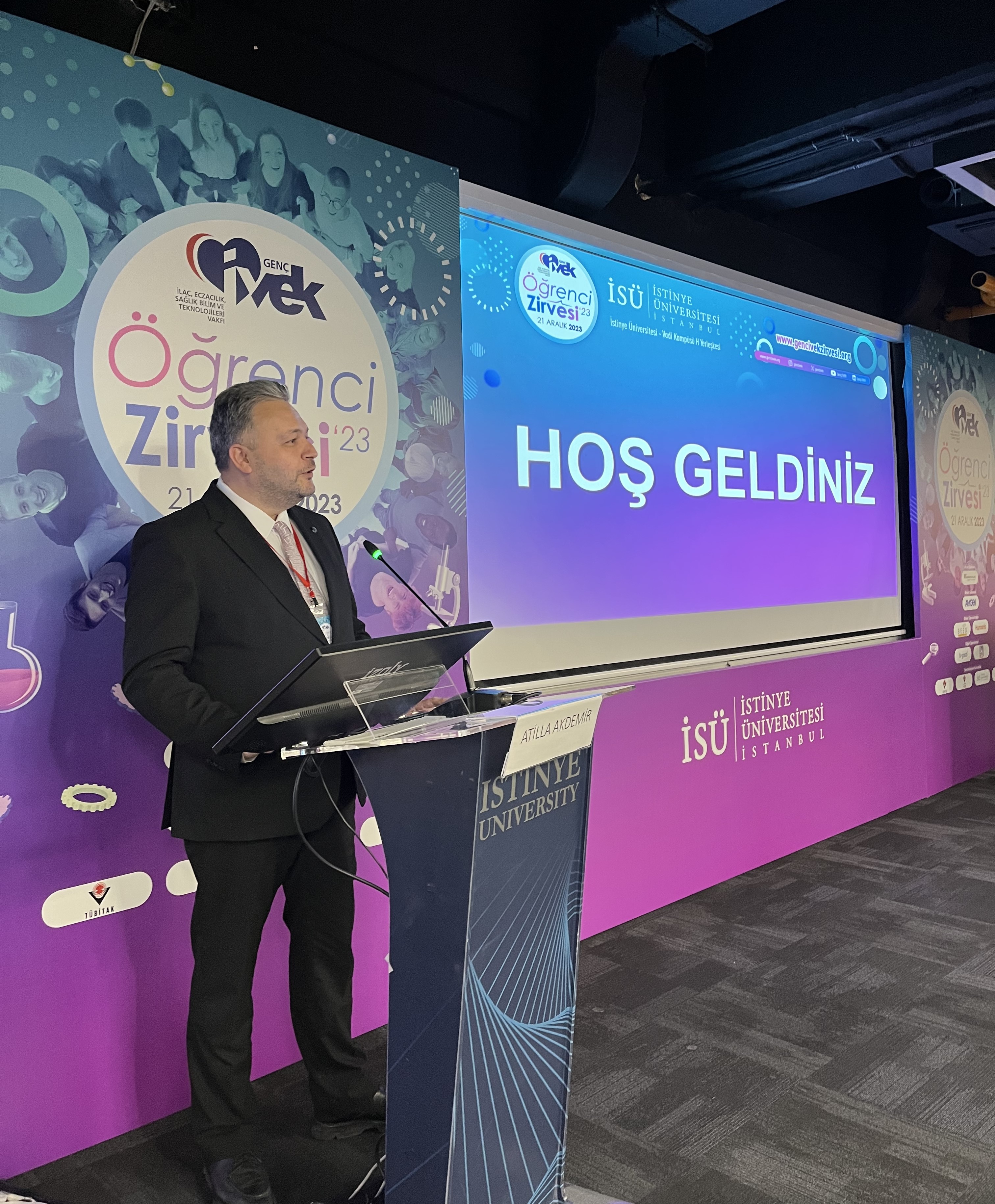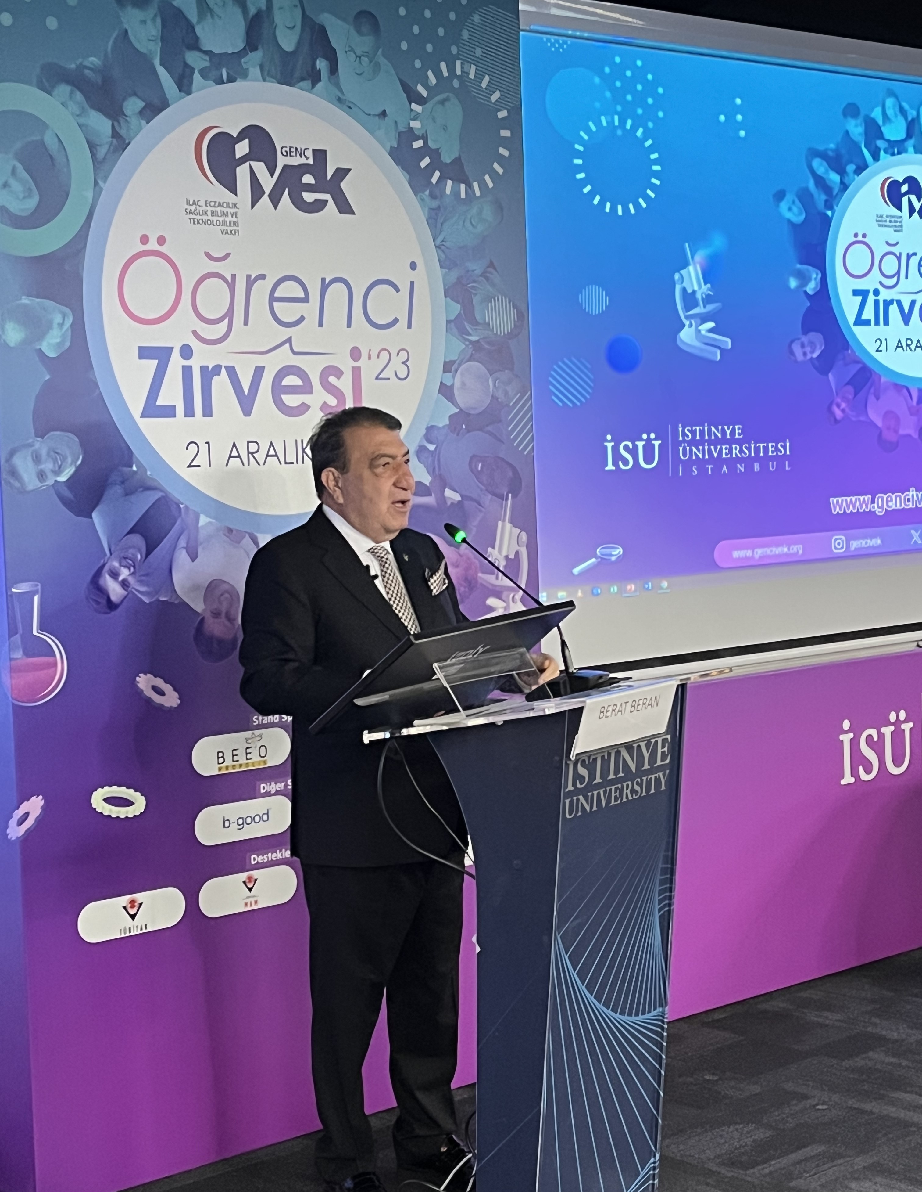 After the speech by Prof. Dr. Atilla Akdemir, Dean of the Faculty of Pharmacy at Istinye University, the stage was taken by Prof. Dr. Erkan İbiş, the rector of ISU. His innovative perspective on young people and valuable insights into the future with technology captured the audience's attention. Rector İbiş inspired the youth with solutions to the dynamic challenges of their era and provided a visionary approach to the rapid evolution of technology.