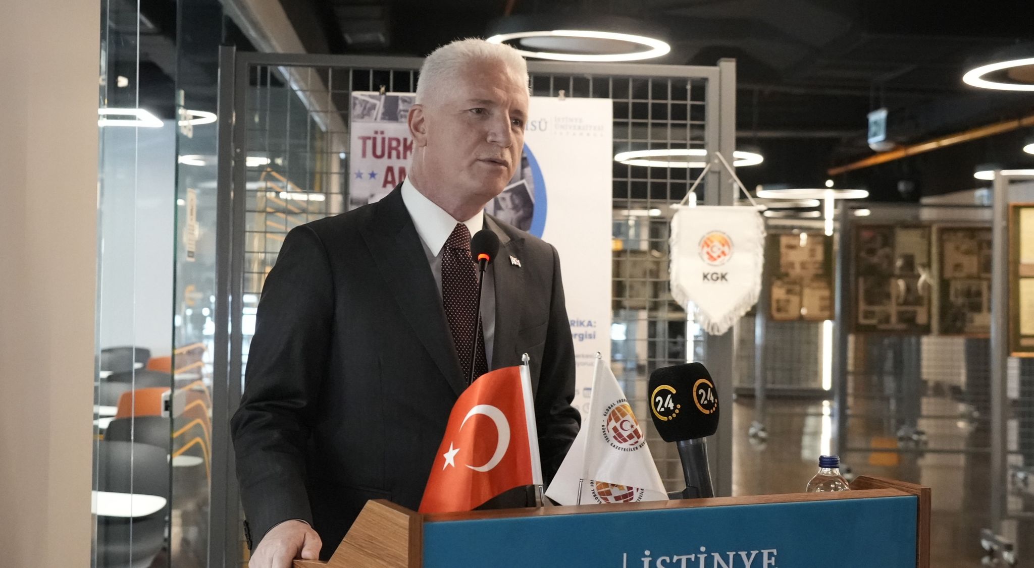 The opening ceremony at Istinye University’s Vadi Campus exhibition hall brought together not only Governor Gül but also Sarıyer District Governor Ömer Kalaylı, Beykoz District Governor Fatih Ürkmezer, Turkish Cycling Federation President Emin Müftüoğlu, former Mayor of Bakırköy Ahmet Bahadırlı, members of the KGK board and council, KGK member journalists, Gaziantep Journalists Association President and KGK Provincial Representative Meral Ay, as well as notable figures from the media, business, and political spheres. Students participating in MediaLab, a KGK–EU joint project hosted by Istinye University, were also present.
